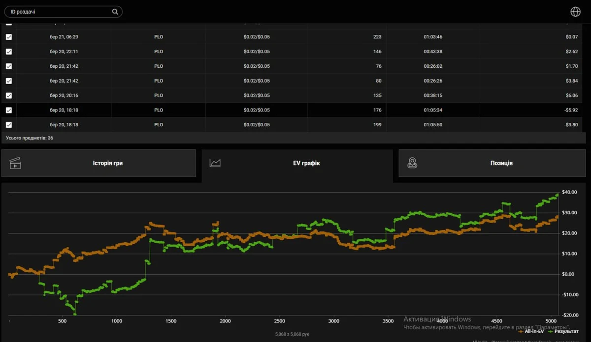 Звісно результати по графіку і позиціях не відповідають дійсності.Проте вони плюсові.Мені вдалось не програти банкрол і контролювати свій емоційний стан протягом ігрової доби.Попри невірні розіграші,помилки і прикрі переїзди залишатися спокійним і грати далі.