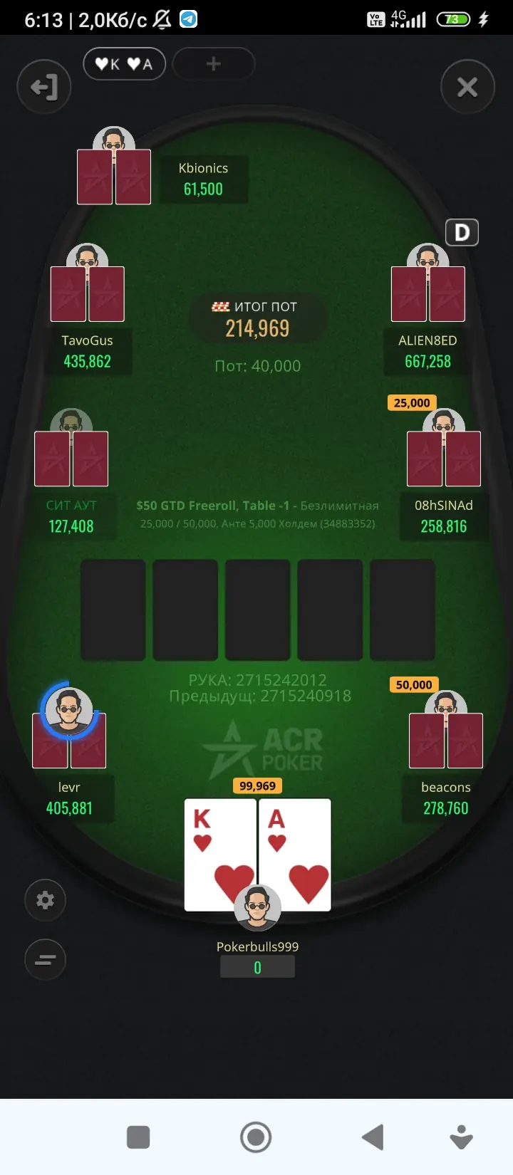 Так,як би смішно це не було,але факт остається фактом,я встав зранку щоб охолодити свій організм від тяжкості святкового дня,як кажуть шашлик із гарним настроєм на ранок в Закарпатті заставляє потягнутися за пивом в холодильник .Привівши себе в норму,я заглянув на ACR Poker,там побачив турік ,до посадки оставалась хвилина,я в ,,коляску"скок,фріролли,не ризик втратити кеш,тай місія у мене зіграти увесь місяць в "безплатках",хоча в планах ACR не був,але на той час коли я вирушив у шлях здобуття стартового капіталу з румів,я не мав нагоди грати в цьому покеррумі,тепер маю,скачав,верифікнувся і гайда добувати "зелені"🙂.Гра видалася цікавою і плідною,були гарні роздачі,які подарували цікаві емоції.
