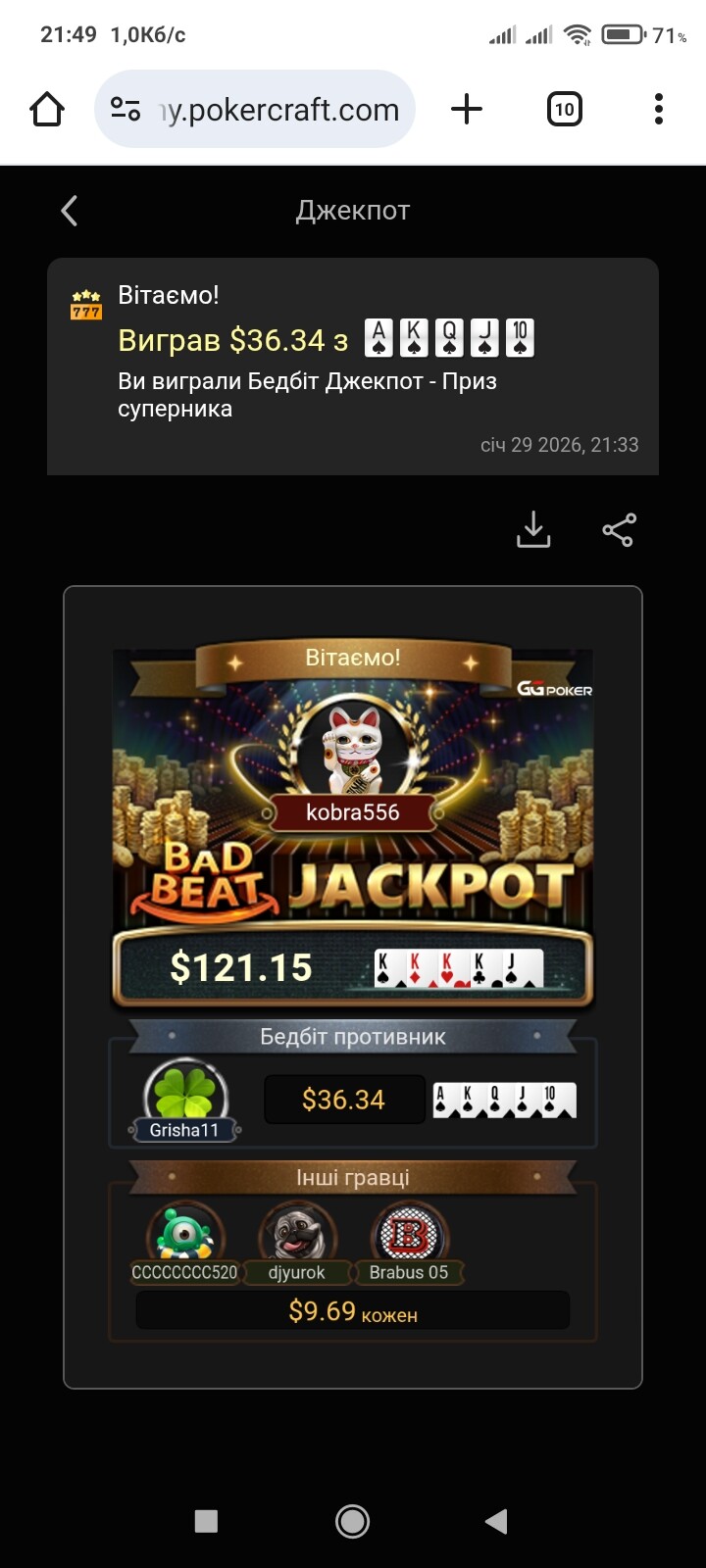 Вітаю в клубі ловців Джекпотів !