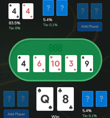 флоп мрії нок і топ стек,в мене 1кк+ і у опонентів по 250к, думаю ща розматаю так як пейджамп 90-160 доволі суттєвий, але не для опонента, він я так поняв ісм не поважав