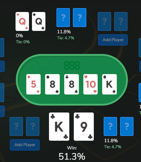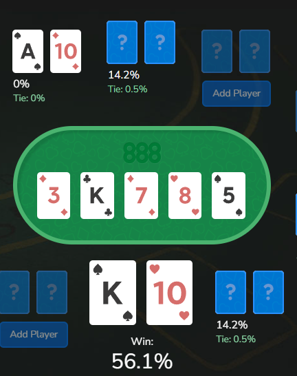 Одразу вибачаюсь скрінів не робив а з історією тут така сама ситуація як і на вбет, але змодулюю декілька роздач з калькулятора СМ.