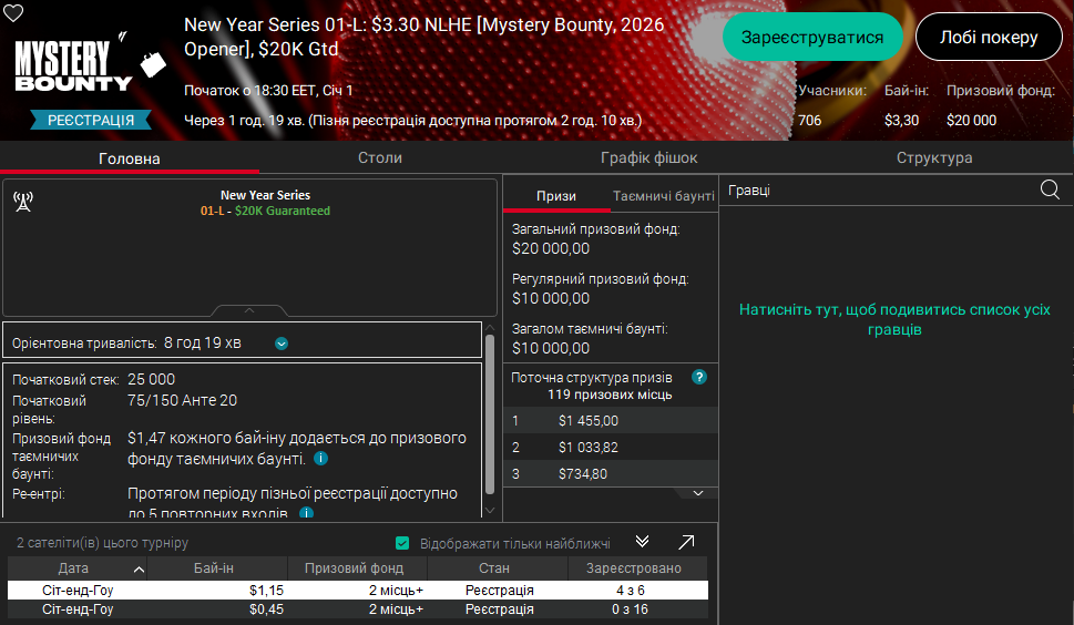 Я точно планую зіграти кілька турнірів, а розпочну з турніру-відкриття: бай-ін $3.30, ще й у форматі містері баунті, початок о 18:30. Хто зі мною, го ластлонгер? 🤠