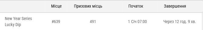 Якщо так, то варто знати: разом з серією розпочинається акція Lucky Dip: роздають призи через щоденні розіграші. Щоб стати учасником достатньо просто грати в турнірах Новорічної серії, незалежно від місця на фініші.