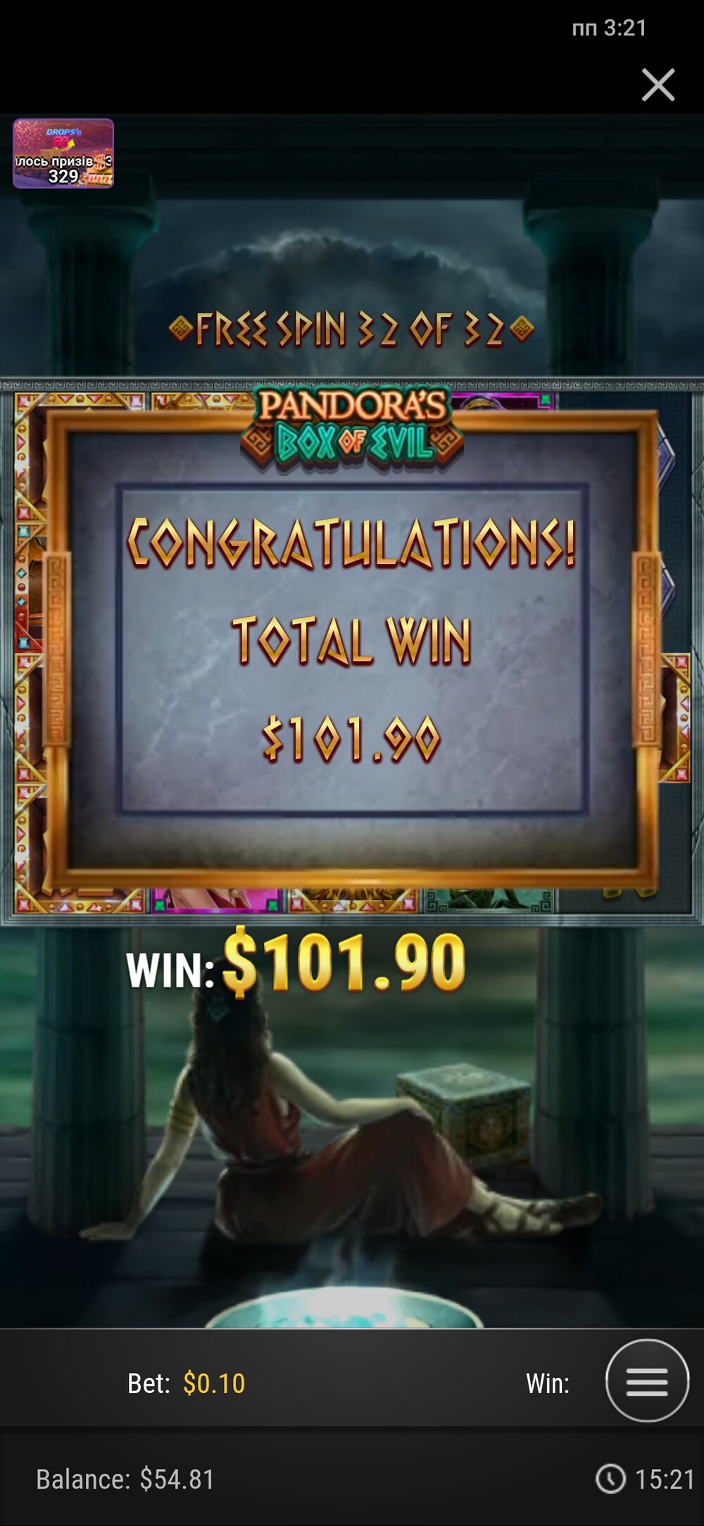 Але чудо сталося в першому слоті який вибрав Pandora's Box of Evils з декілька прокручених спінів випала бонуска, як на пл го не погано х1000, правда ставка0,10 центів) але і це не погано)