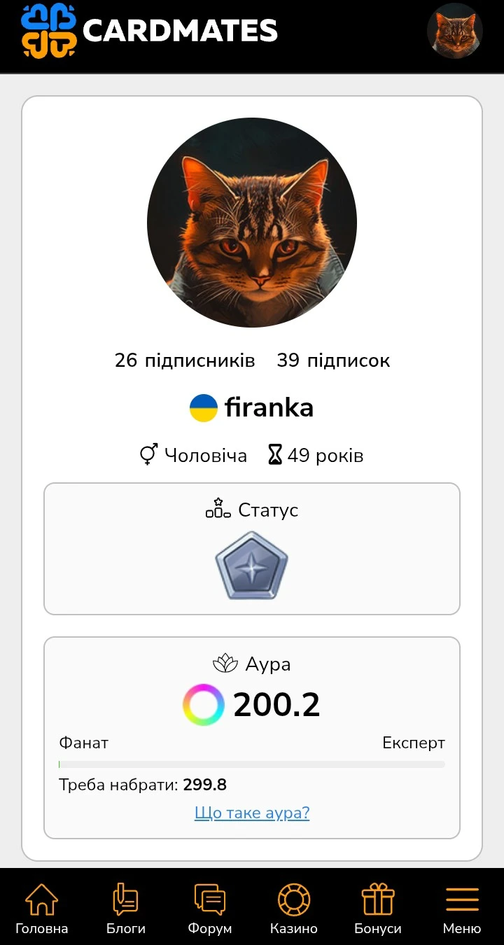 На Cardmates я прийшов тиждень тому. Завів свій блог, почав читати пости форумчан. Написав навіть вигадану покерну історію, яку багато хто коментував, і їм велика подяка за це. Помітив що тут дуже дружня атмосфера, усі обмінюються інформацією, діляться радощами і підтримують в сумну хвилину. Дякую усім хто допоміг стати "Фанатом"♥️, ви надихнули продовжувати свій блог🤗