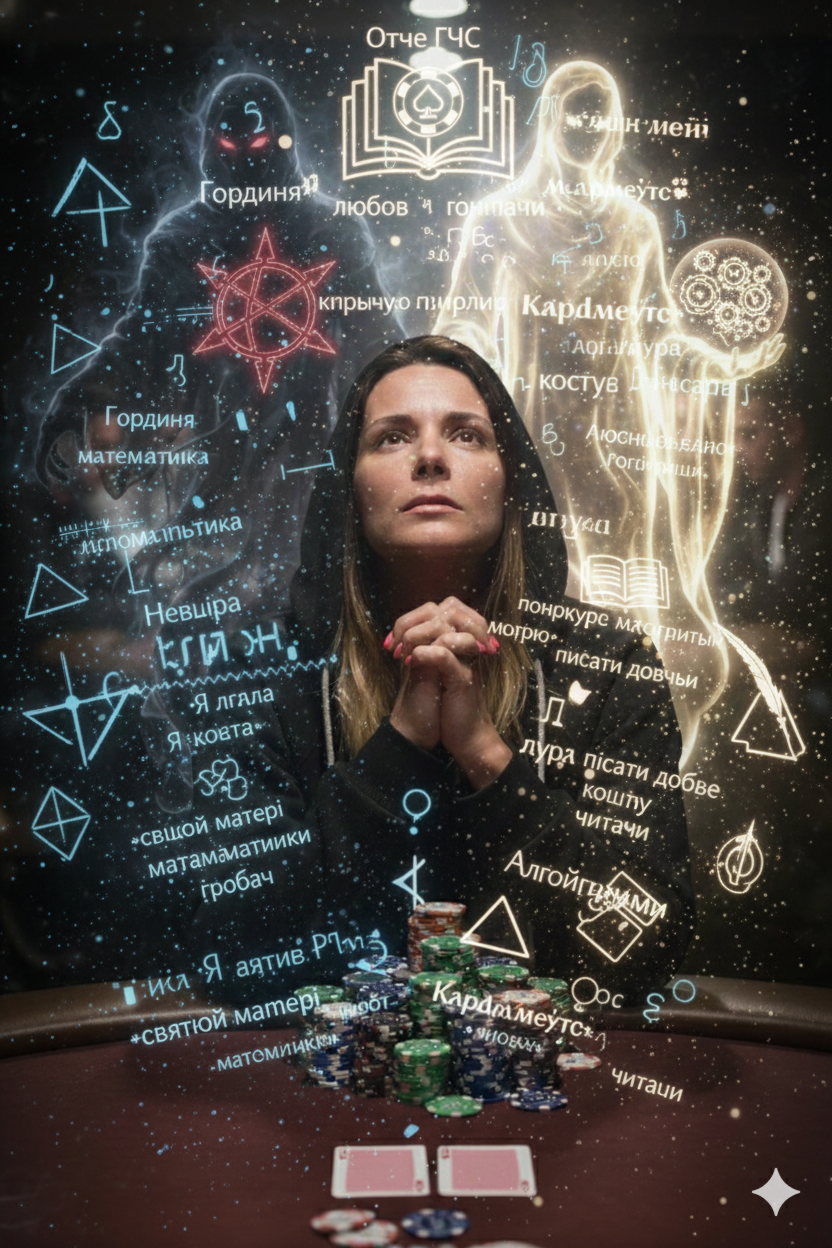 Гріх другий. Брехня. Я брехала всім за столом і, що найгірше, — самій собі, переконуючи, що маю "натс", коли в руках було сміття. Мої блефи, були такі нелепі, що навіть ніт на спаренній флеш дошці вскривав мене по третій парі