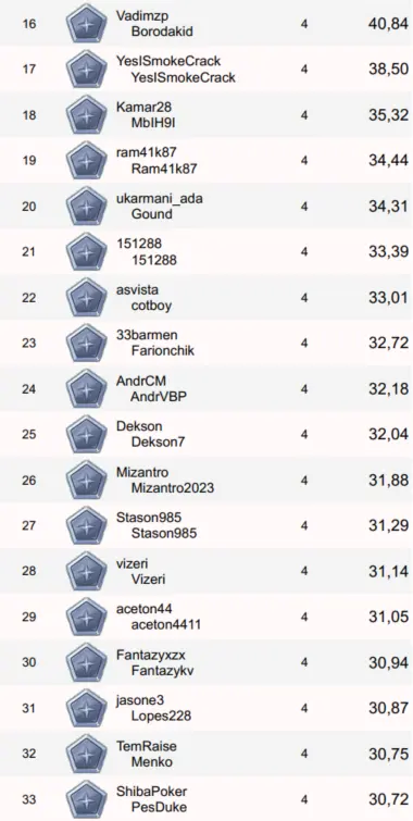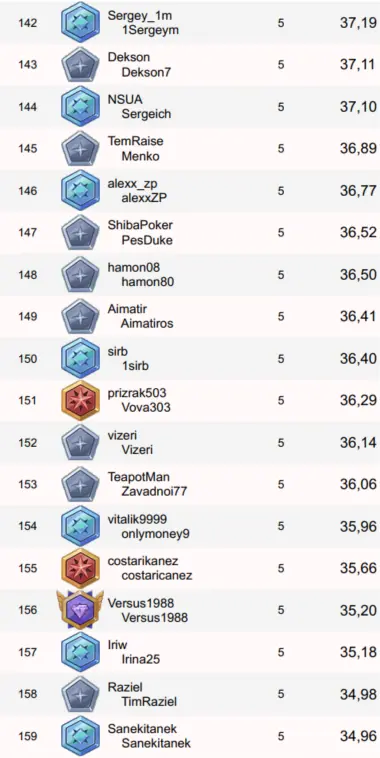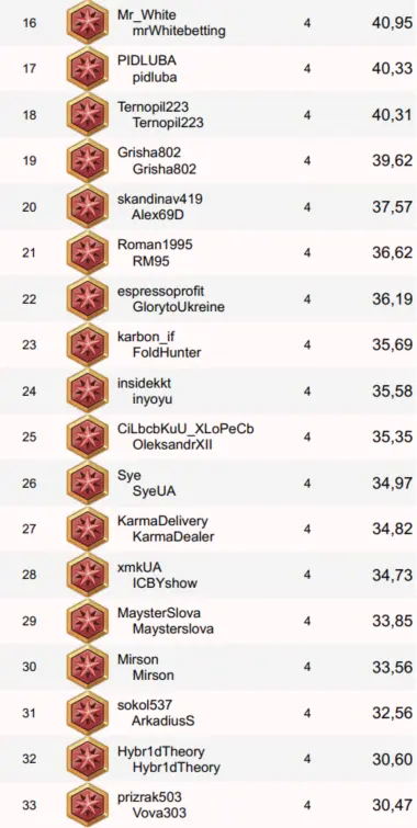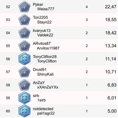 Дякую за інфу) Тільки написано, що я зіграв 4 турніри, хоча половину з яких, був у сітауті)