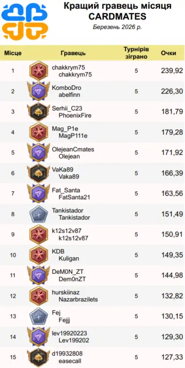 Кращий гравець місяця Cardmates - chakkrym75 🦈