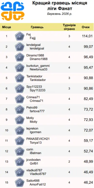 Кращий гравець місяця ліги "Фанат" - Fej ⭐️
