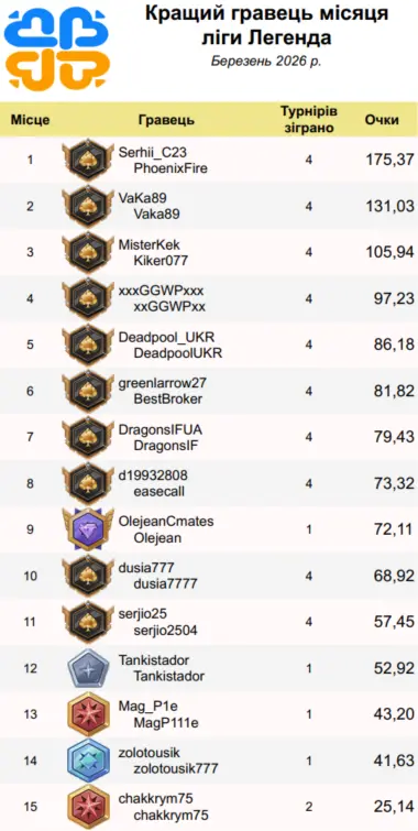 Кращий гравець місяця ліги "Легенда": Березень 2025, Квітень 2025