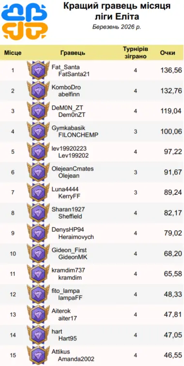 Вітаю кращих гравців місяця з чудовими результатами 💪👏