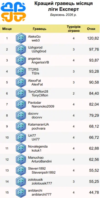 Оце новина! Не очікував взагалі колись стати призером бодай у якійсь статусній лізі, а тут - гравець місяця, і не просто, а Кращий гравець місяця Cardmates! Це дійсно досягнення серед таких сильних гравців! Дякую!