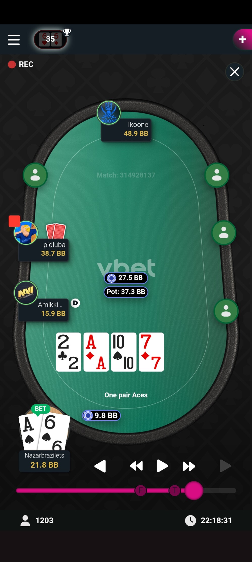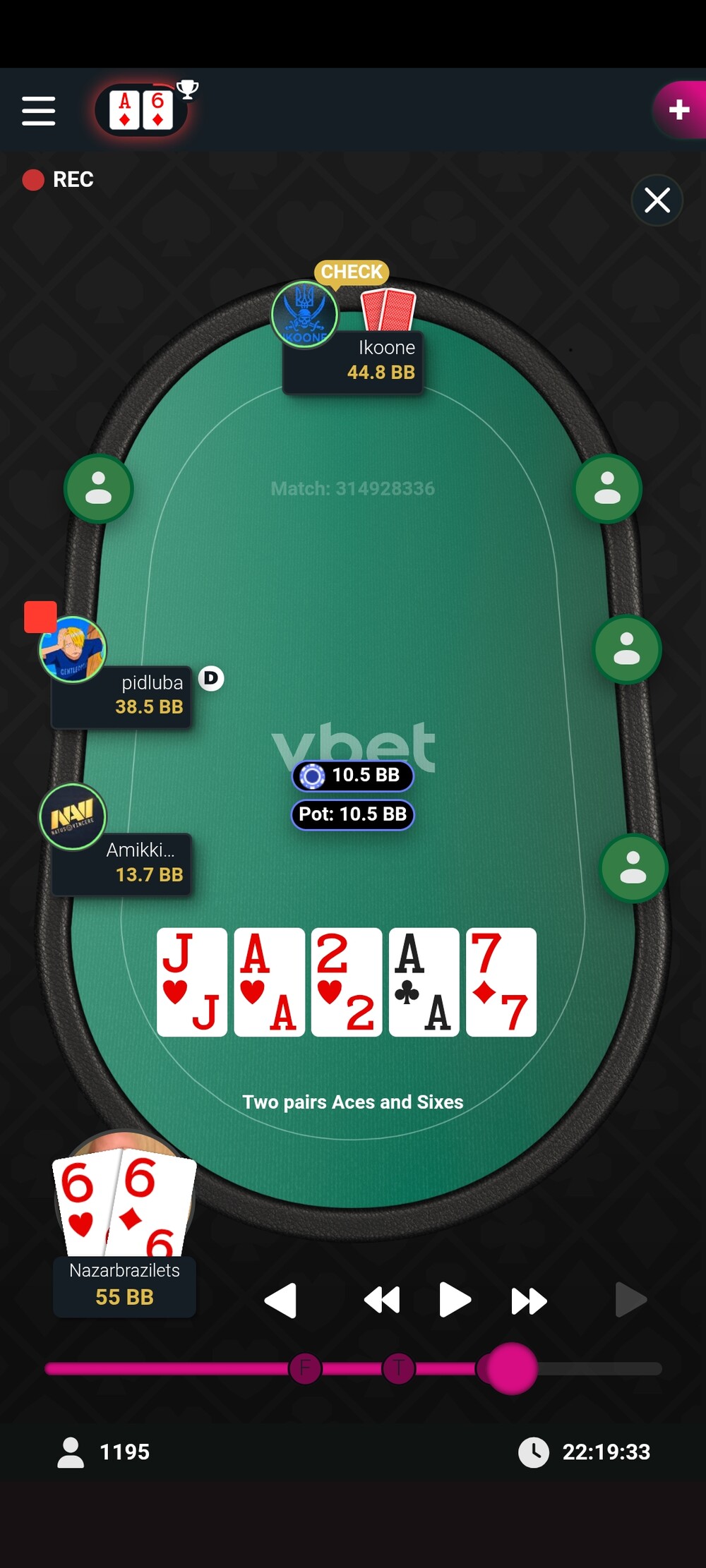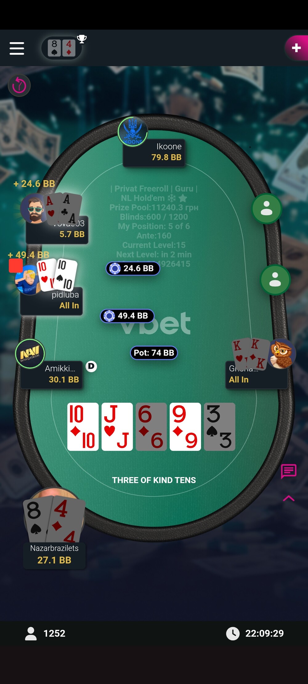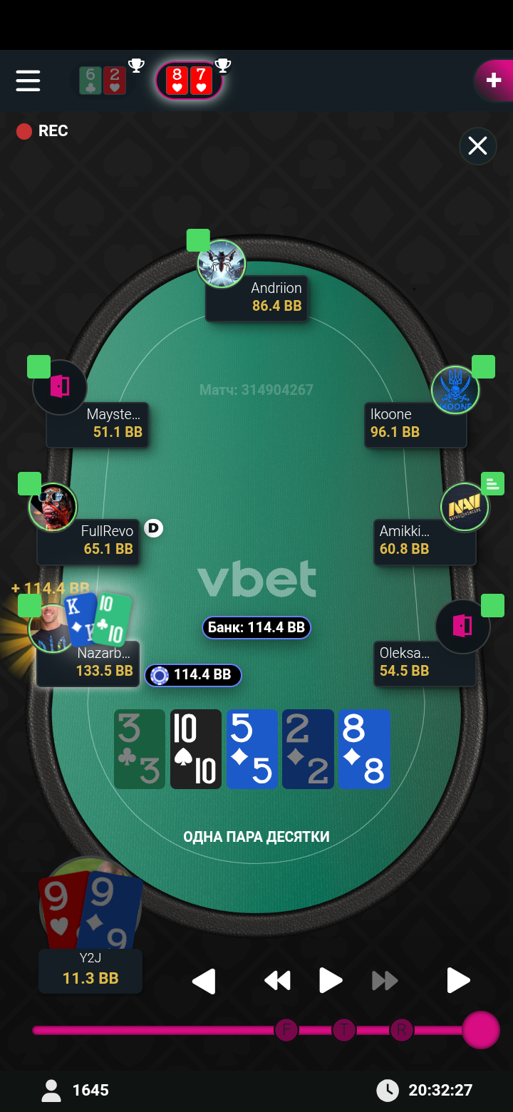 Pidluba, ставив префлоп 7bb, флоп 6bb, по тьорну вже я вирішив поставити та він скинув. Я думаю що мав JJ карман хотів сет, но не доїхало...🤭