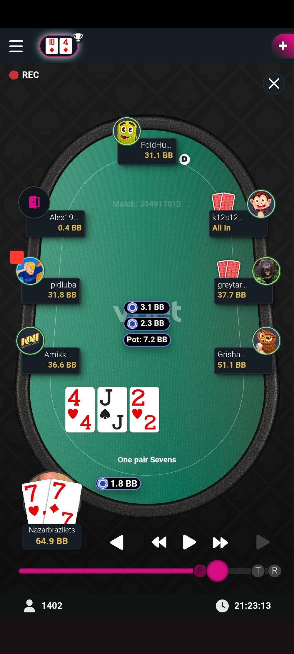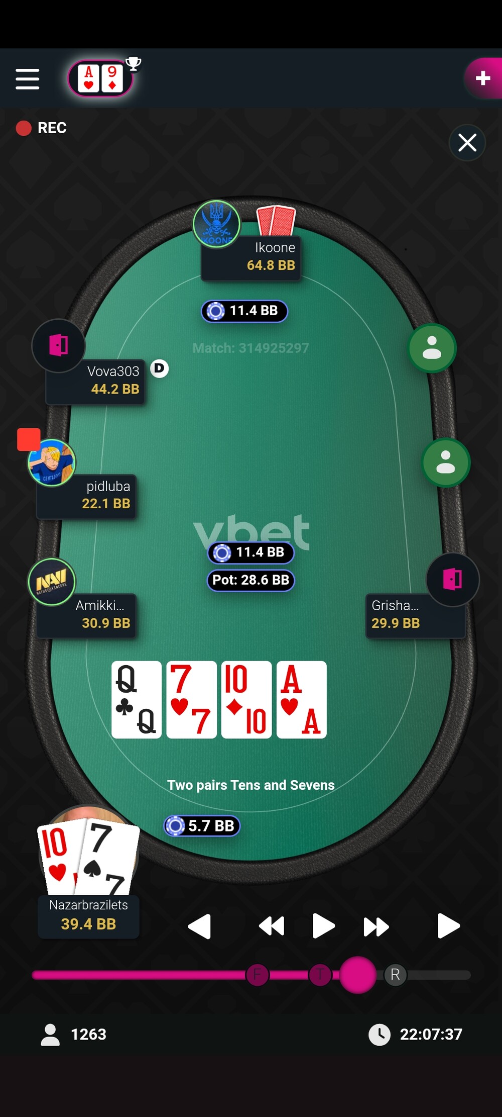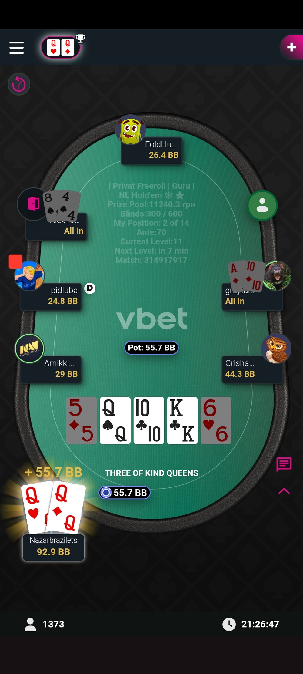 Pidluba, ставив префлоп 7bb, флоп 6bb, по тьорну вже я вирішив поставити та він скинув. Я думаю що мав JJ карман хотів сет, но не доїхало...🤭