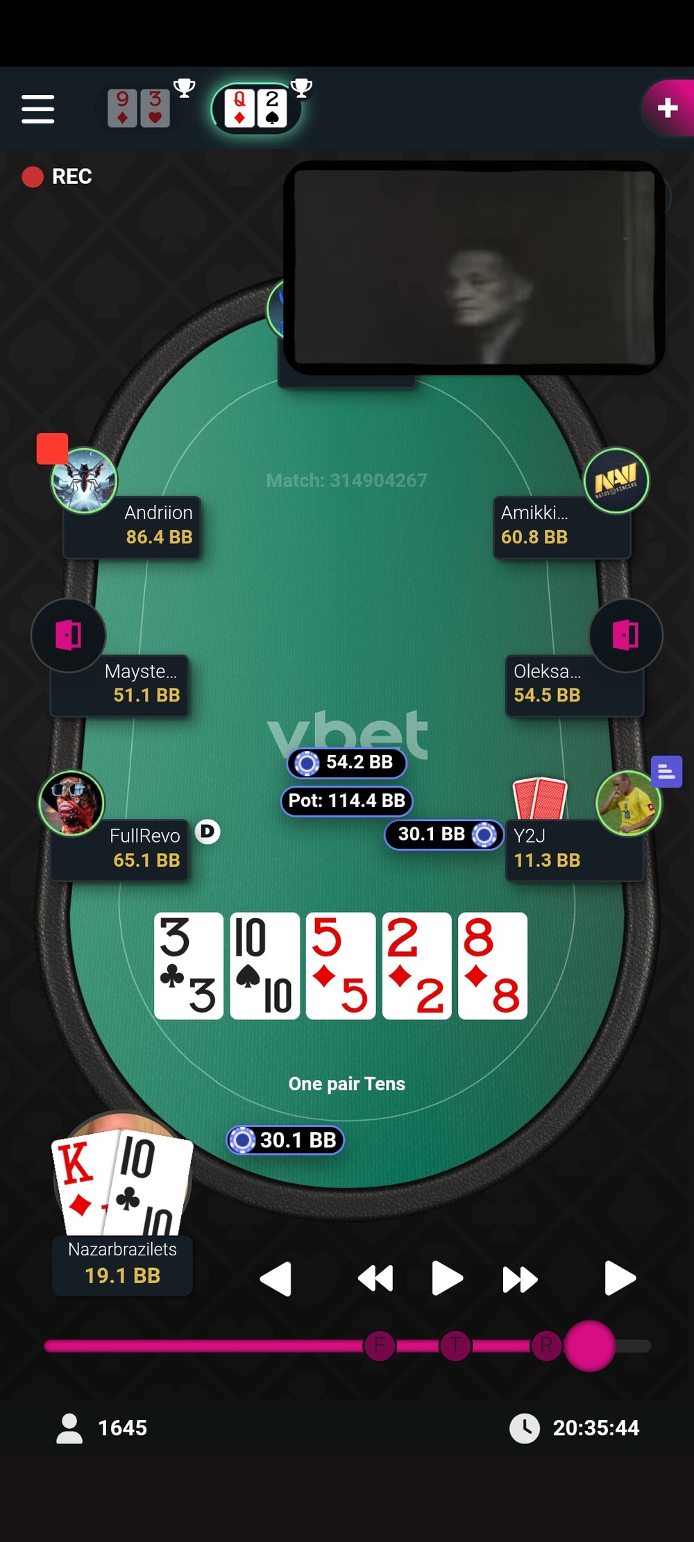 Перша хороша замазочька у нас з Y2J, колим, рейзим, по ріверу ставим багато та друг зізнався що мав 10 з слабшим кікером. Майбутні пару роздач я йому назад віддав той стек що забрав.🫠🫡