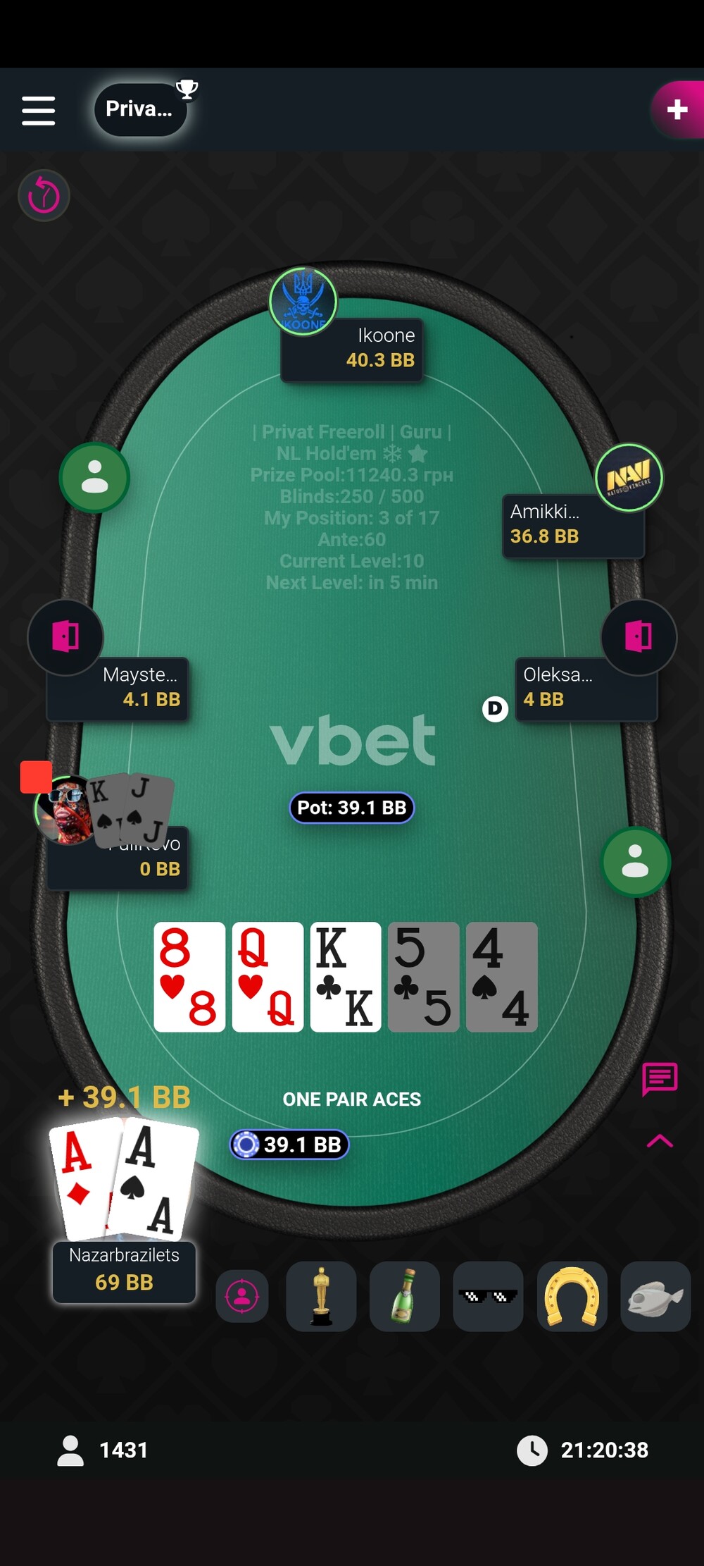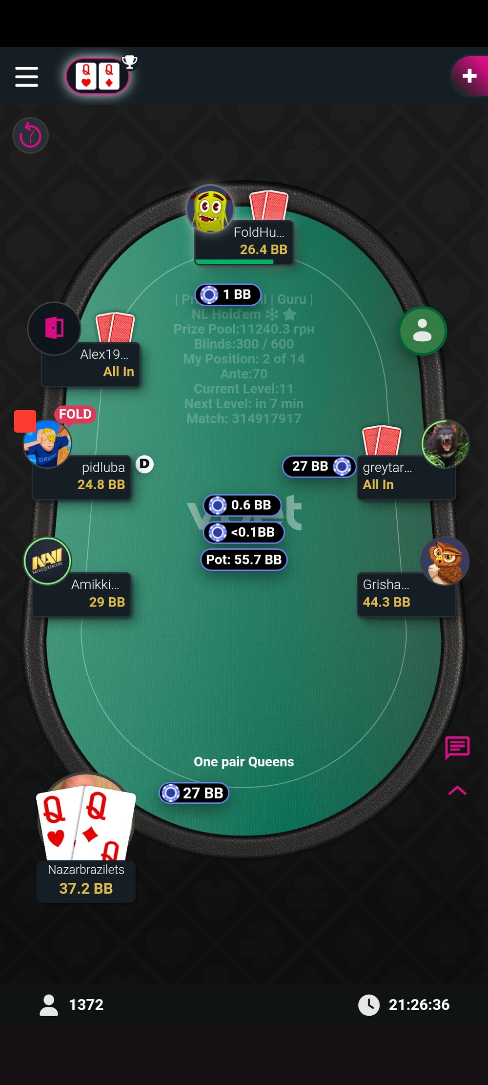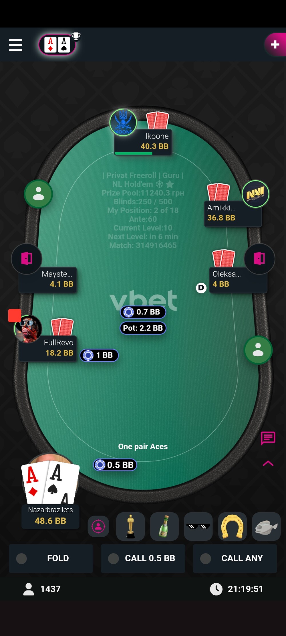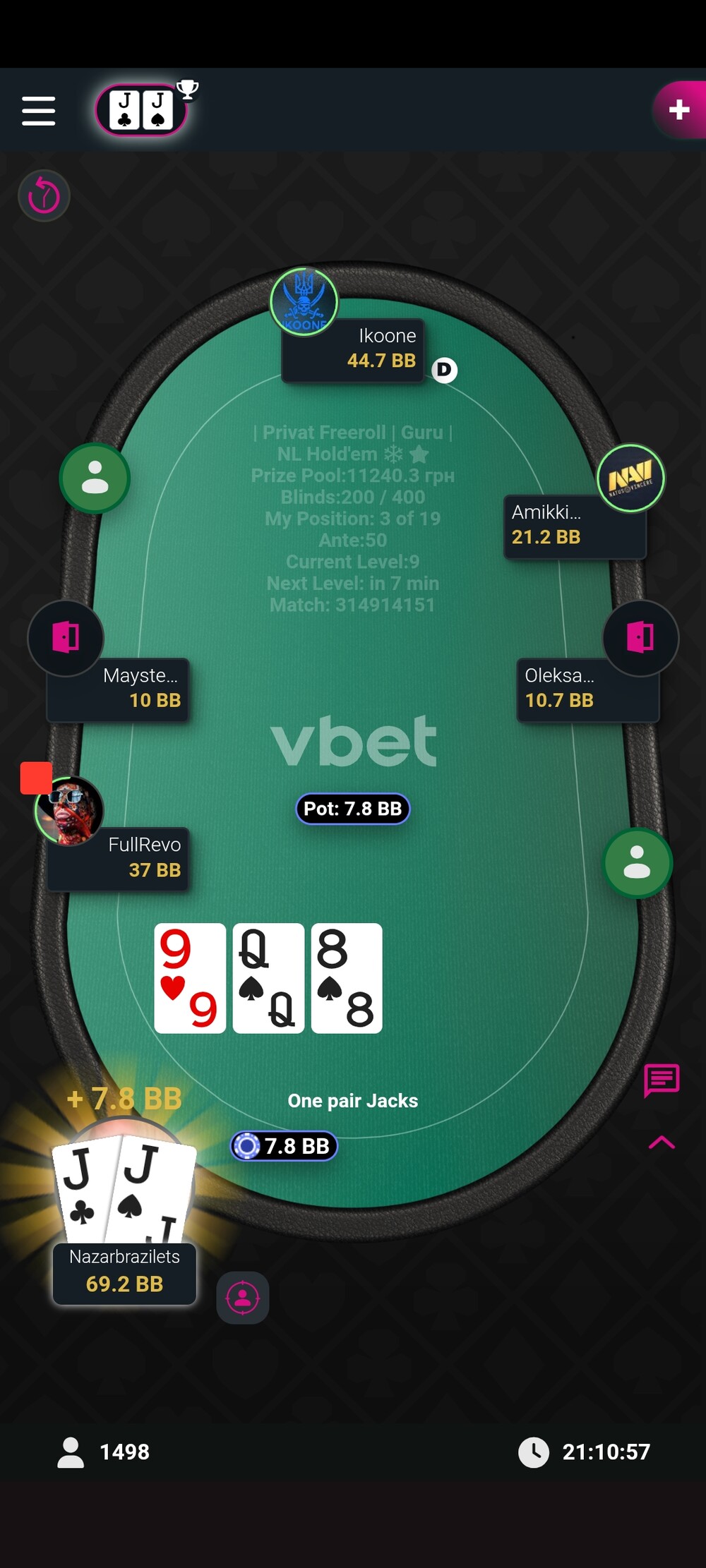 Старт у мене був досить не поганий, два кармана один за одним но не проплачений, рейз в 2бб для них був надто сильний( відчували що пахне жареним)😝