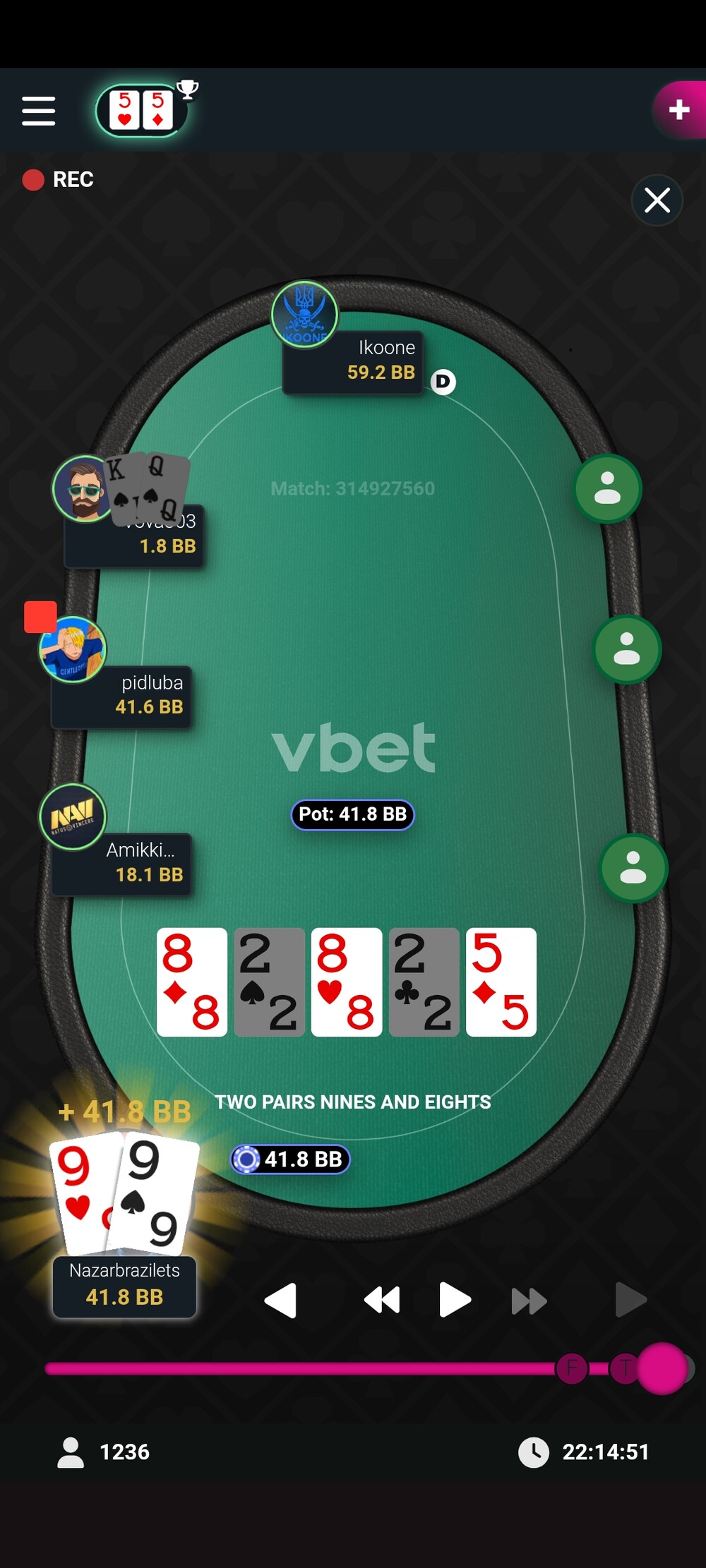 Почався ХА, 10 хвилин хватило. Був попереду, був по заду, пару невірних рішень та поплатився чемпіонством. Суперник часто пасував до флопу мабуть в ХА не часто грає. IKonee заїжало йому часто як і мені, чуйка була що переможе тому вітаю тебе друже.🤝🥳