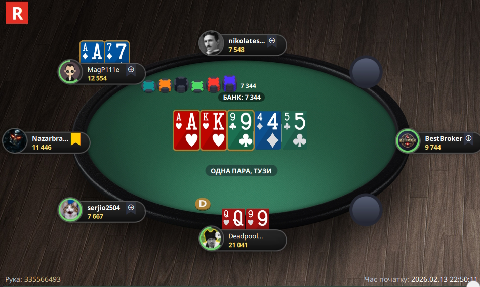 Повернути втрачені фішки вдалось завдяки кращому кікеру в роздачі:
