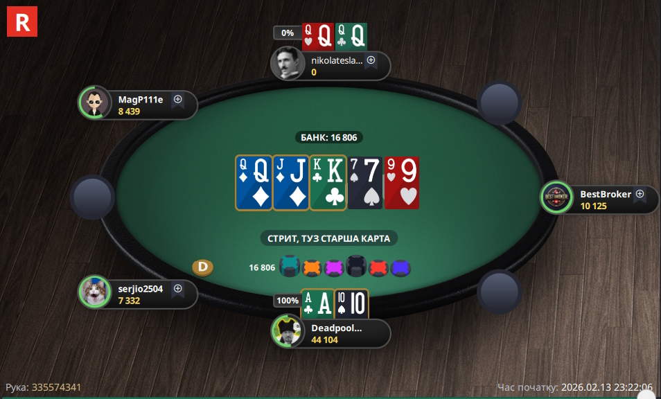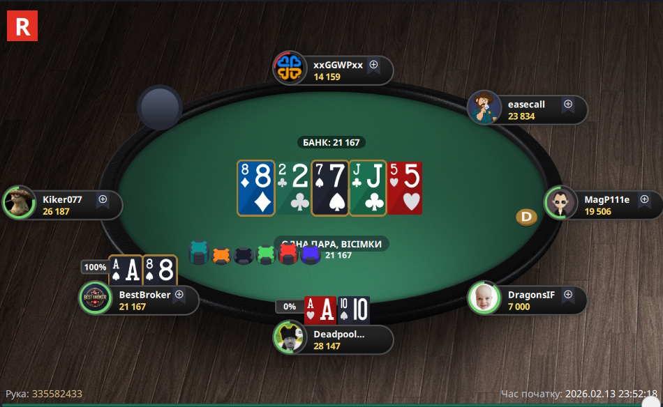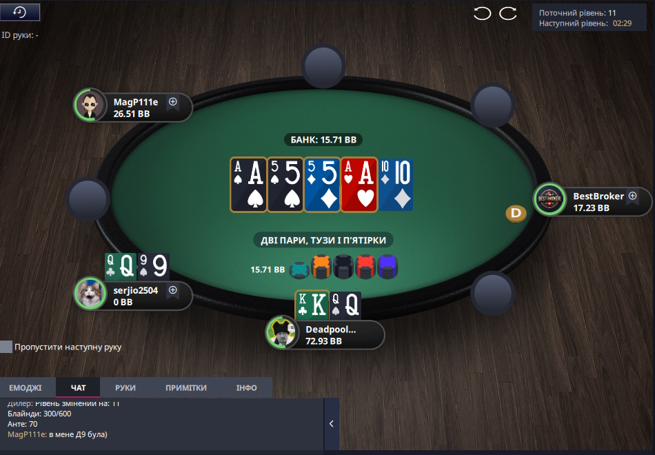 Насправді це просто жах будь-якого покериста! Вдячний усім за увагу! Не дивлячись на все це я завжди намаюсь підтримувати дружню атмосферу в чаті і реально останнім часом кайфую від спілкування під час гри.