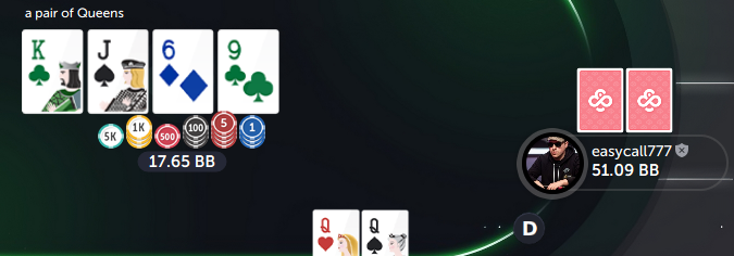 Сiro1227 грав активно, 4бет пушив 100вб з 55, тут він вирішив у мультипоті зіграти чек/оллін. Заманював що називається. Добре мати натс, шкода тільки що уразливий.