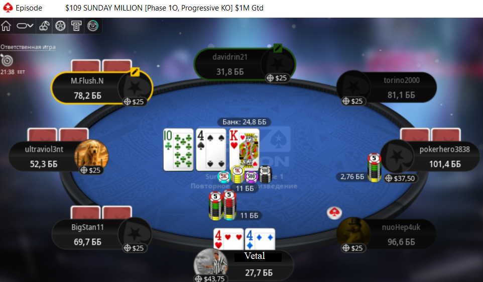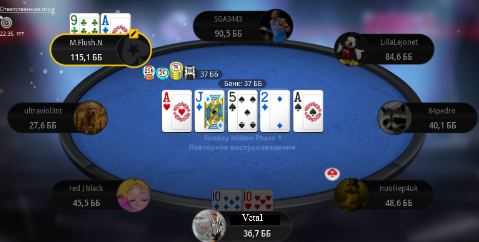 Вчора весь день нудьгував за покерними столами поки не настав вечір. У вечері на вісімках були рейтингові турніри й хоч гарантії порізали та головний турнір не зазнав змін, саме на нього і налаштовувався. Мав відчуття що рознесу його та про це в кінці, там біль та сльози, а зараз про Sunday Million, котрий цього тижня йшов з понеділка, бо має дводенно-фазову структуру.