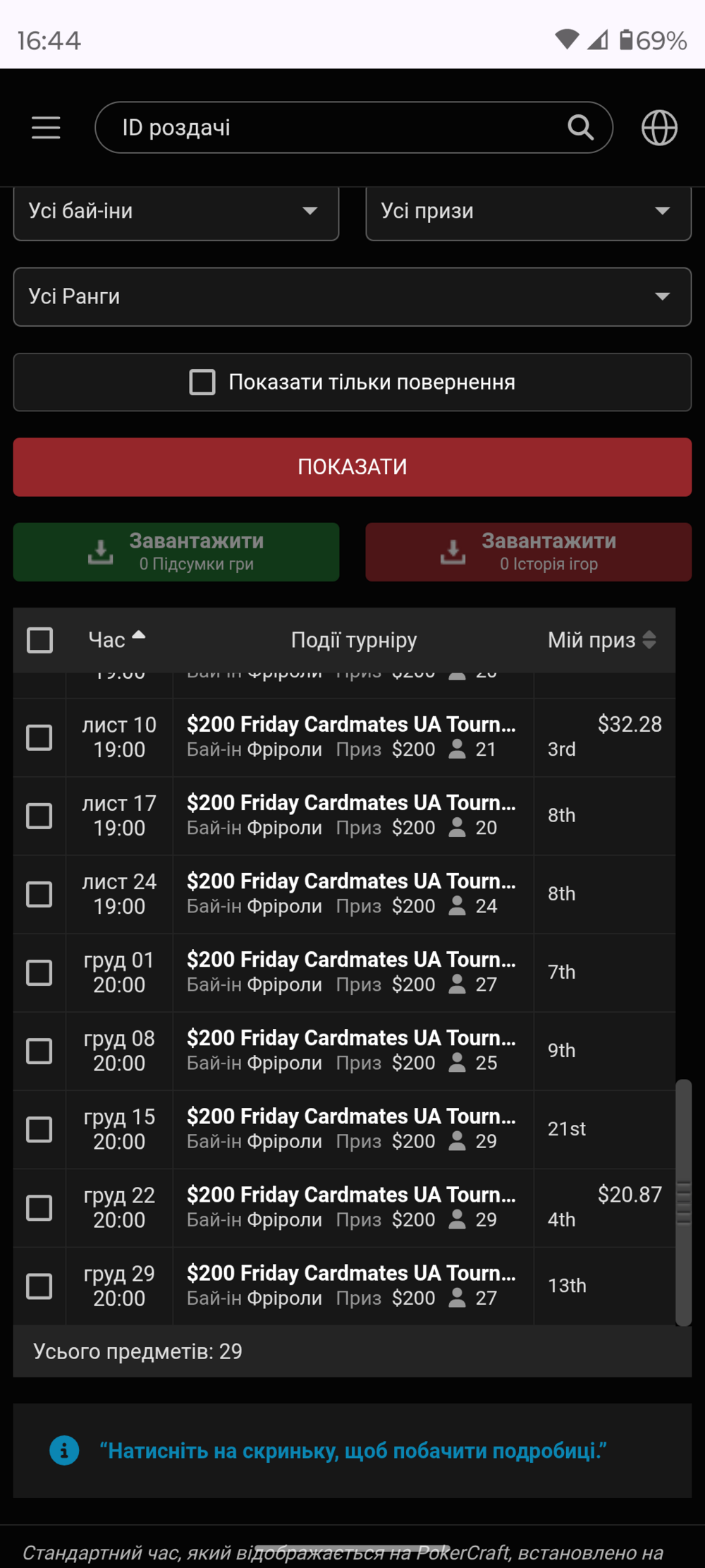 Руслан Krowkashy вийшов на фінальний стіл серед Еліт одним з найкоротших, проте зумів дійти до ХА з Петром Ege7688 👏 ХА завершився о 22:28 🕥️ Руслан очолив лідерборд і очікував завершення інших турнірів, зокрема хомки Легенд, де чіпаком був Максим Maxer
