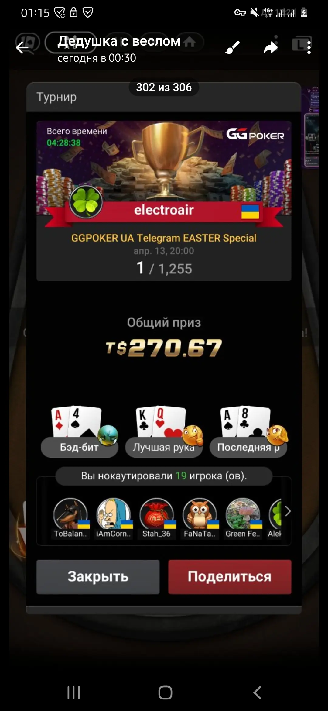 Класно зіграв, особливо на фіналці💪 Світлих свят і побільше таких профітних турнірів😉👊