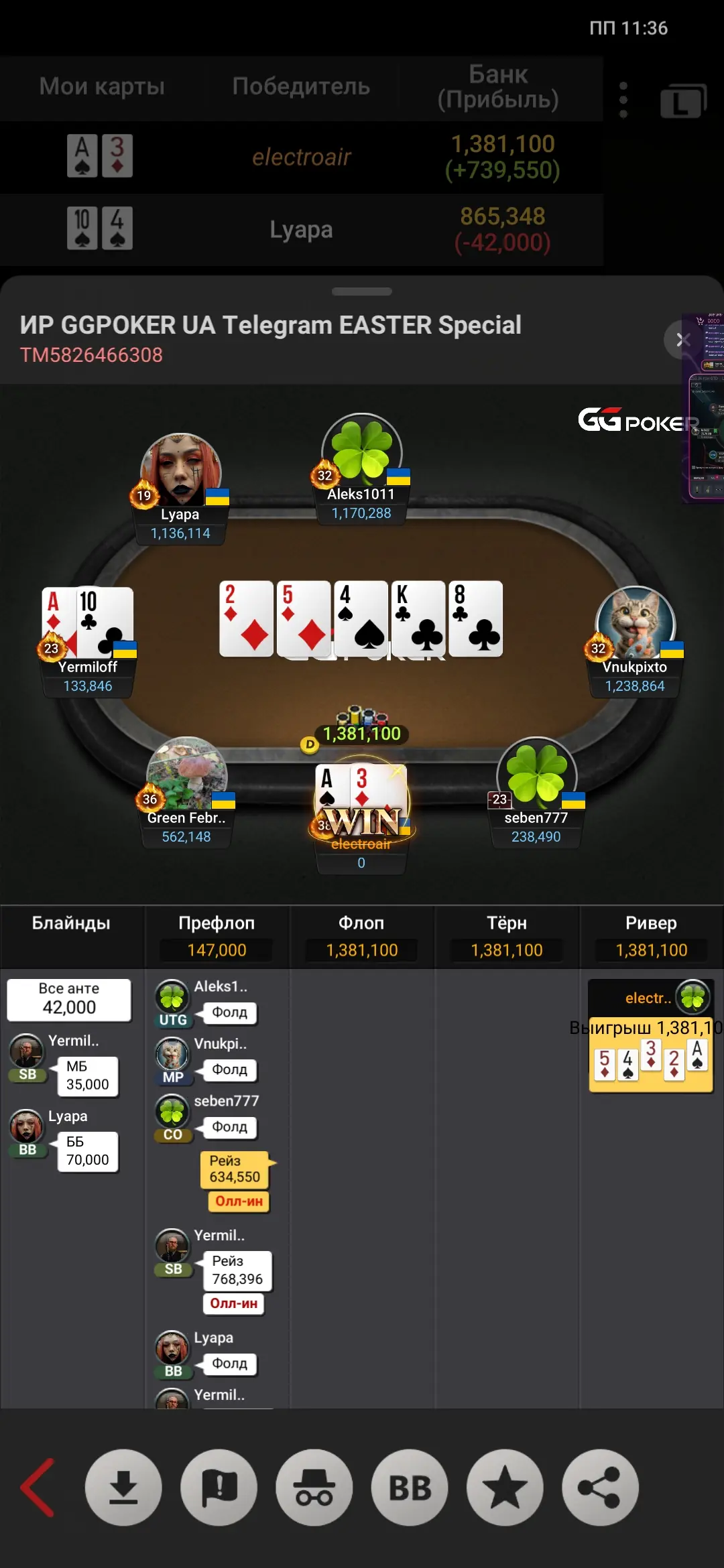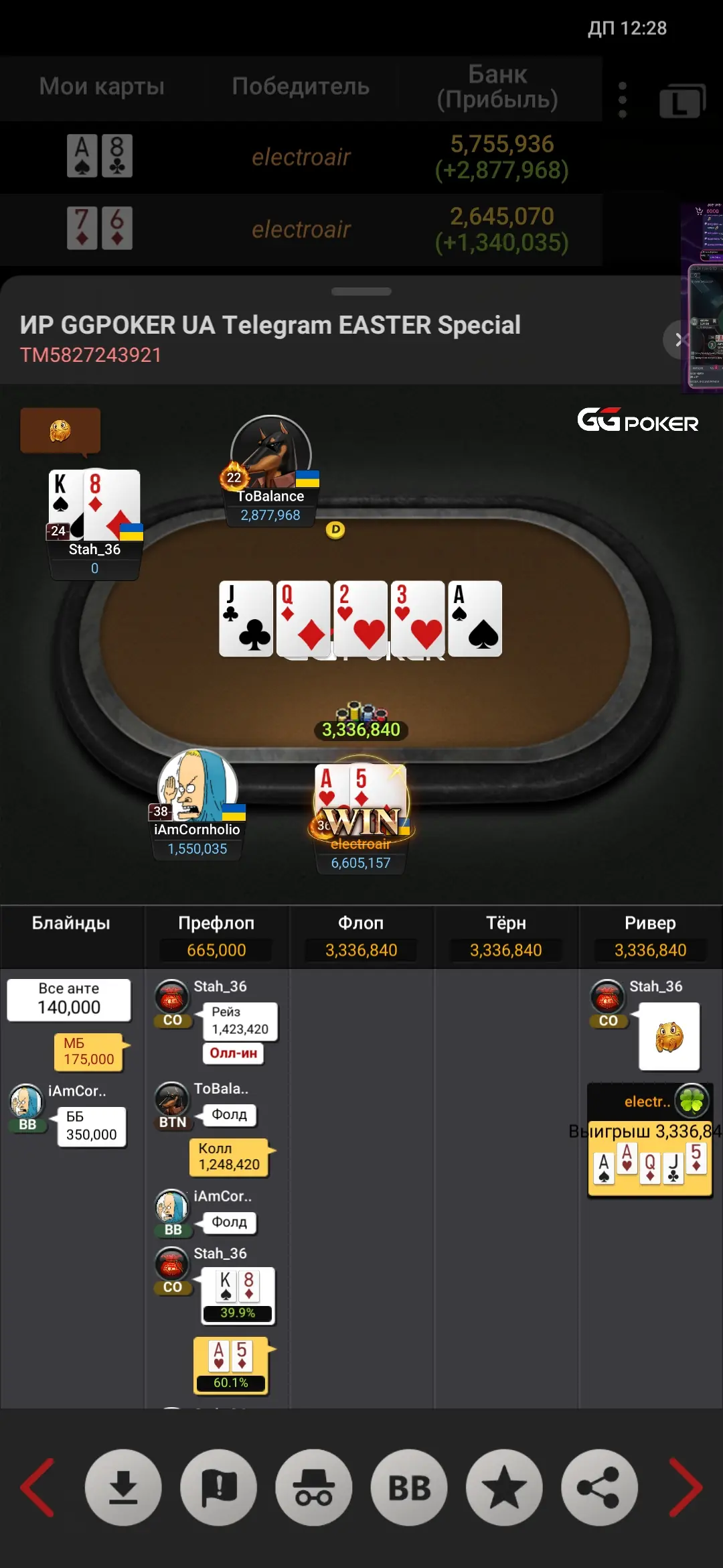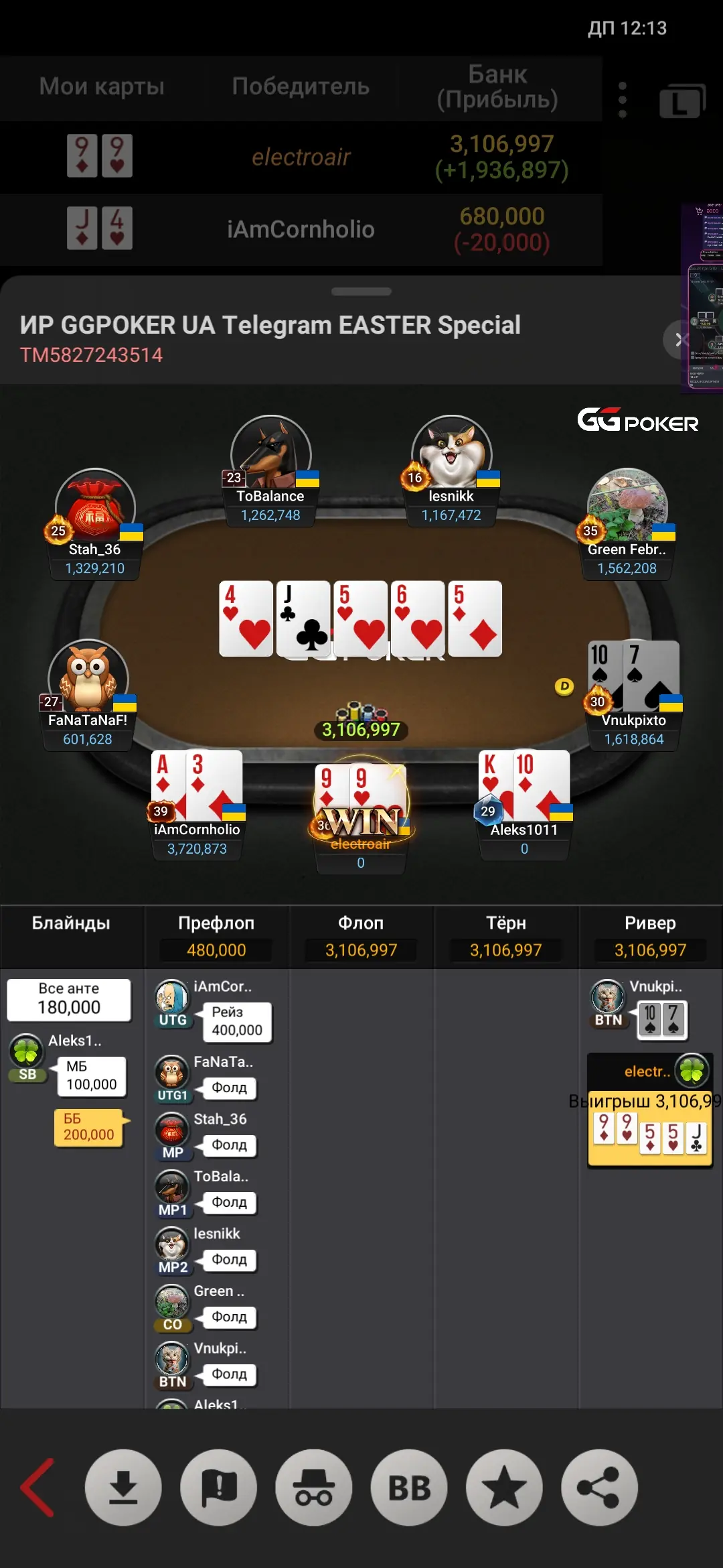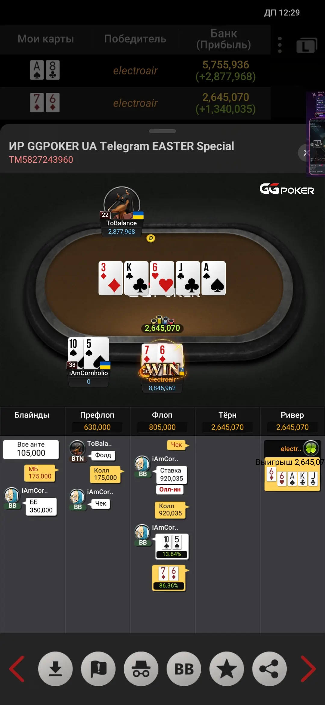 В 3 максі рішив грати на блефи суперників,заходжу Лімпопо з 76 - ловлю 6, чекаю і жду дії від опа...і він олин,я колл і хендзап...
