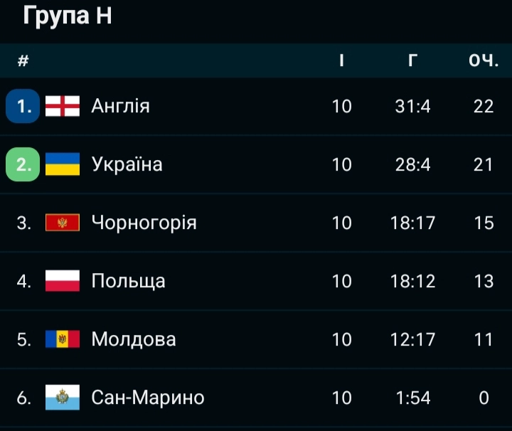 У групі з 🏴Англією, 🇲🇪Чорногорією, 🇵🇱Польщею, 🇲🇩Молдовою та 🇸🇲Сан-Марино Україна знову фінішувала другою - і знову отримала плей-офф.
