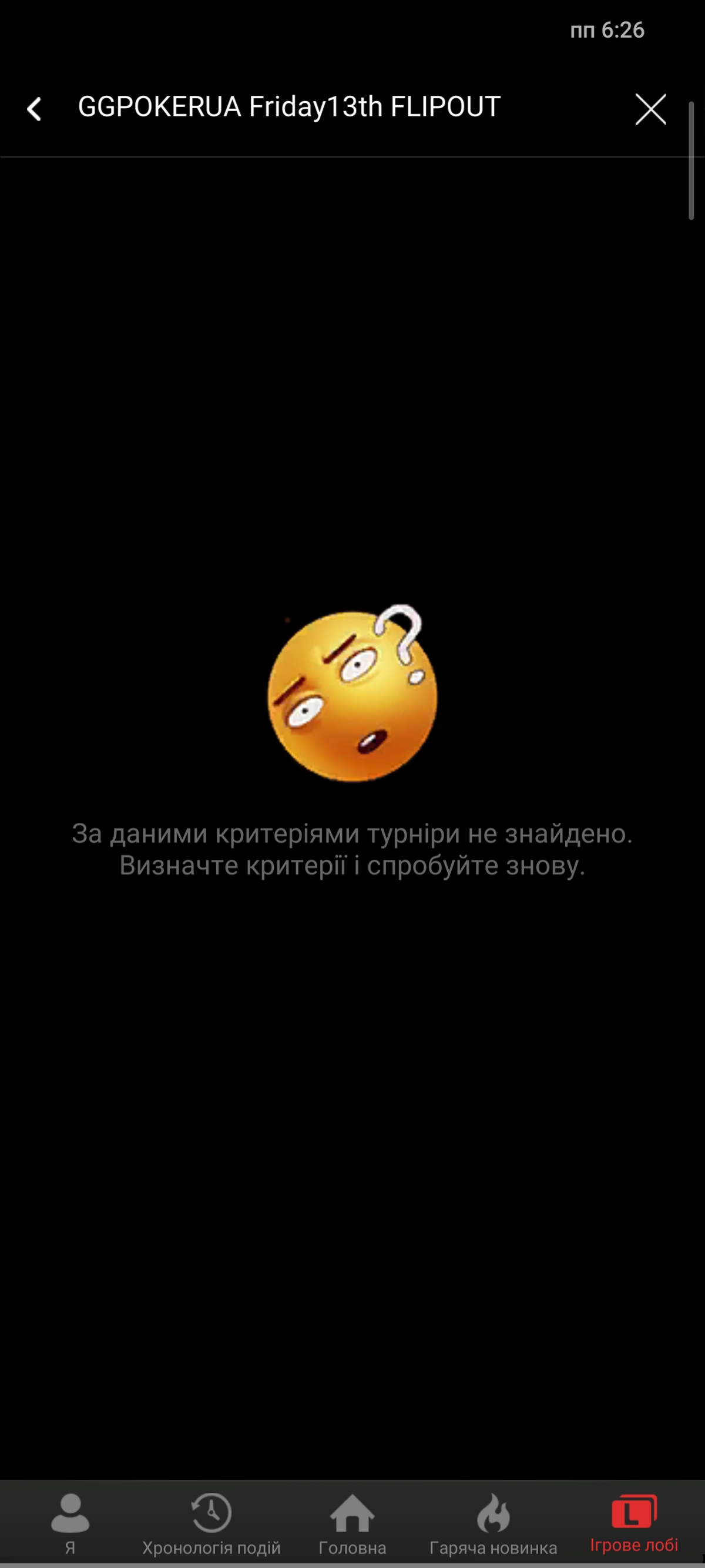 странно я в лоббі навіть не бачу цей турнір