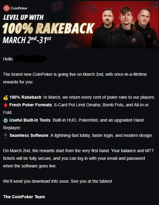 У березні CoinPoker запускає акцію з повним рейкбеком.