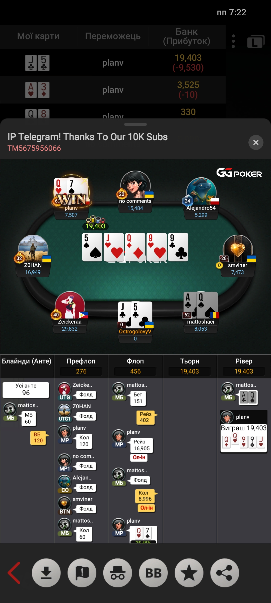 Я все флоп дві пари, суперник олін пара дам, терен і рівер дві 9.