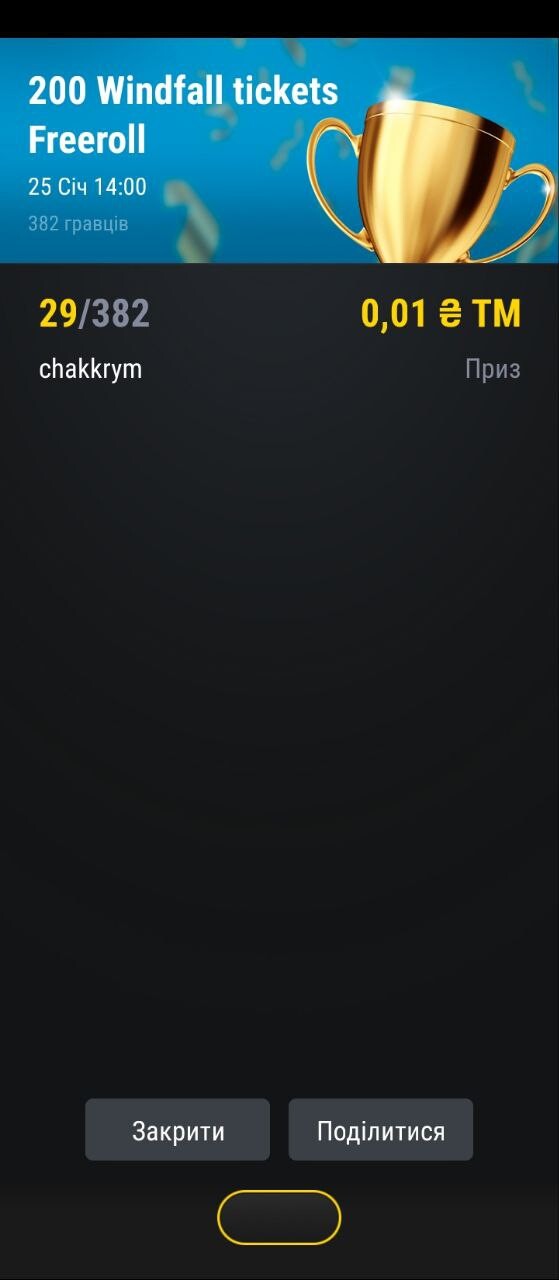 Білет на віндфол за 20грн.