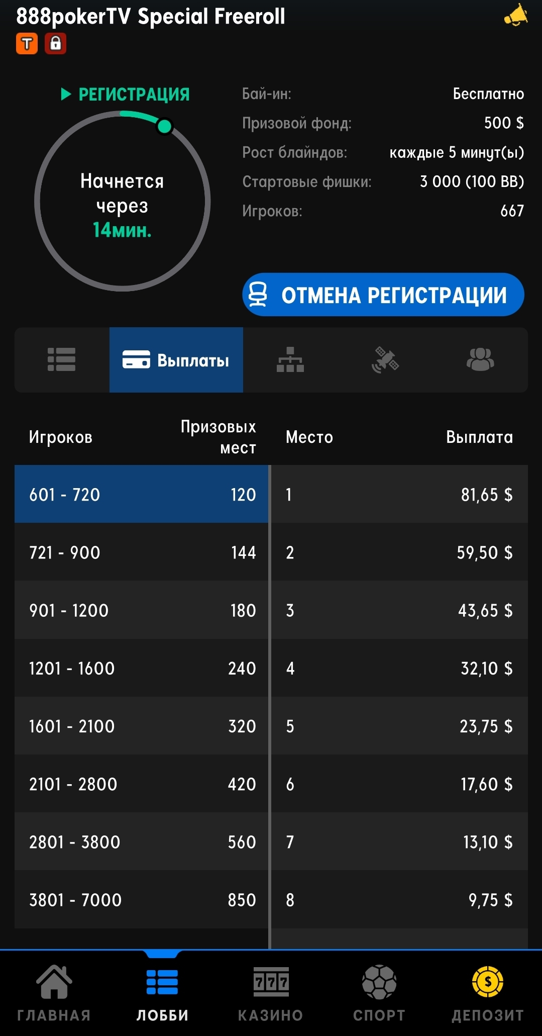 8️⃣8️⃣8️⃣pokerTV Special Freeroll 500$