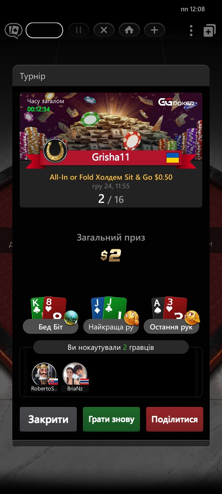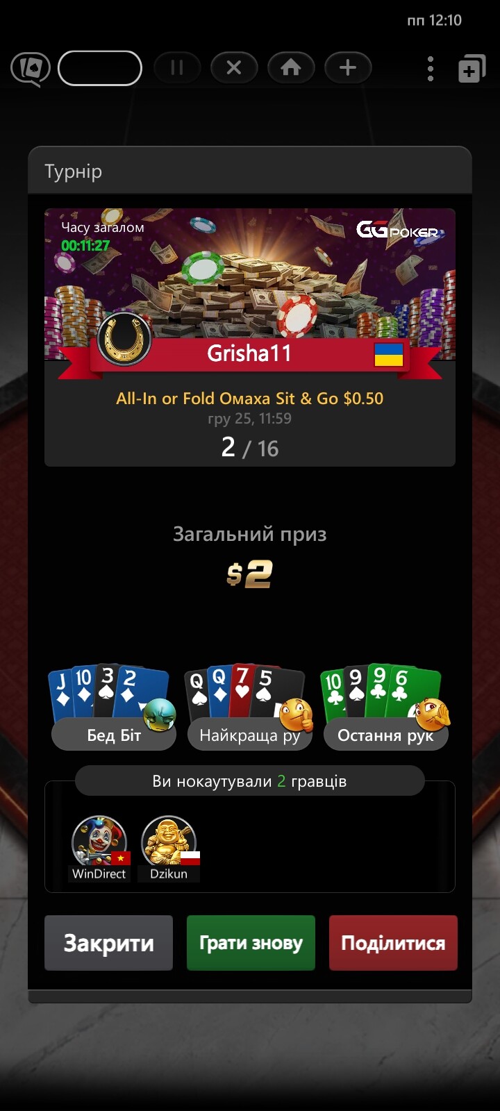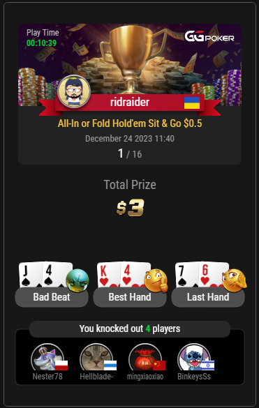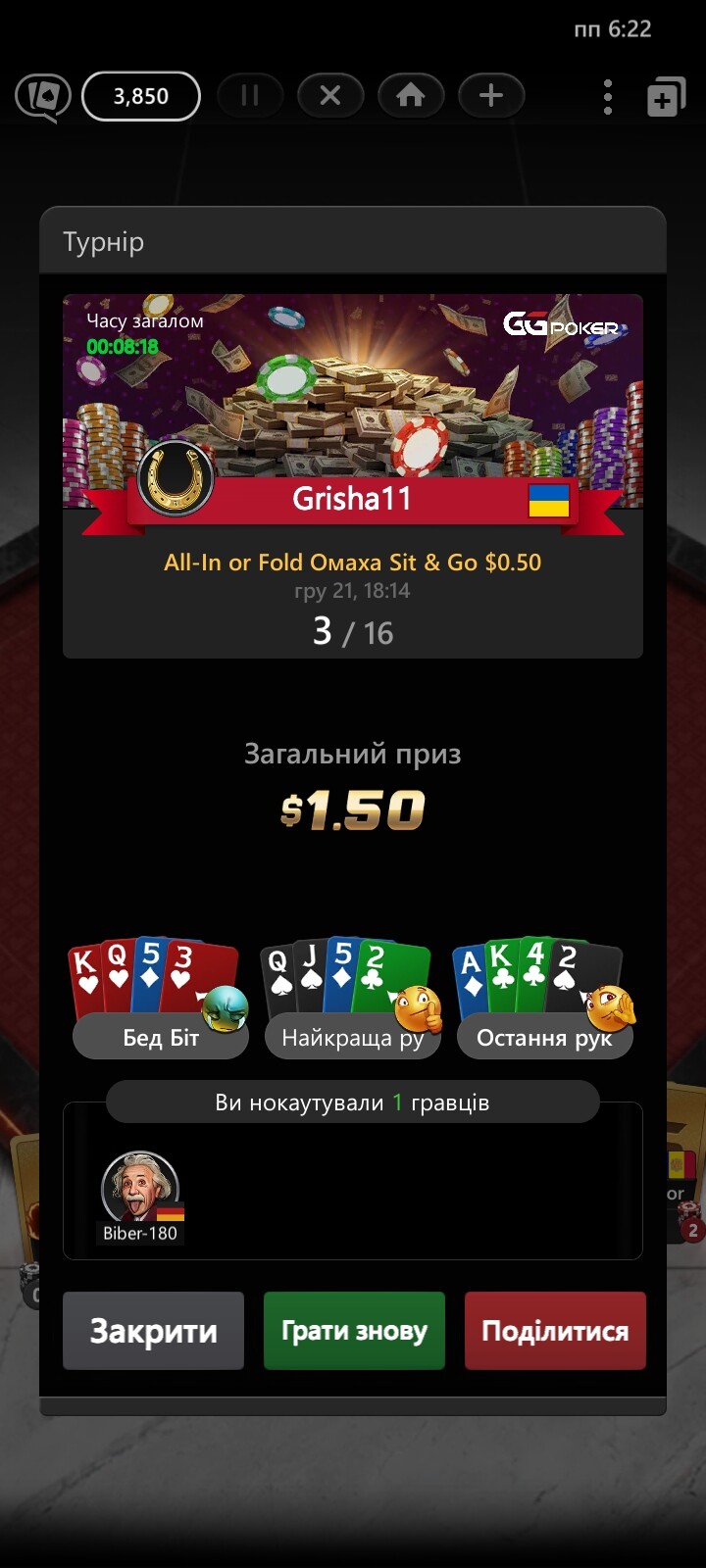 Грав тільки холдем, із 3-х раз двічі попав в ітм. До цього не грав ніколи.