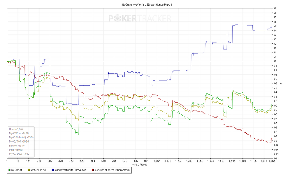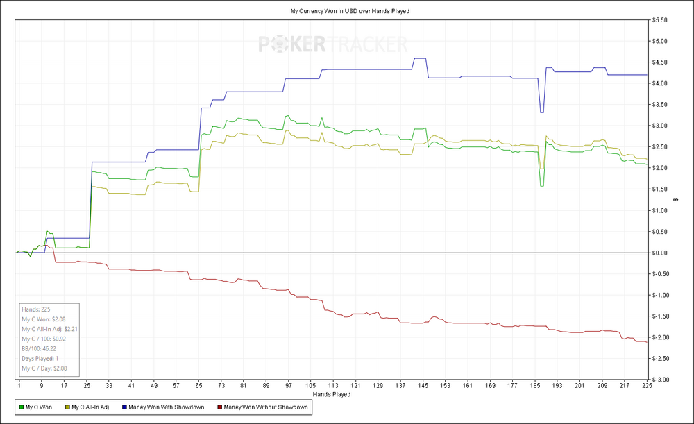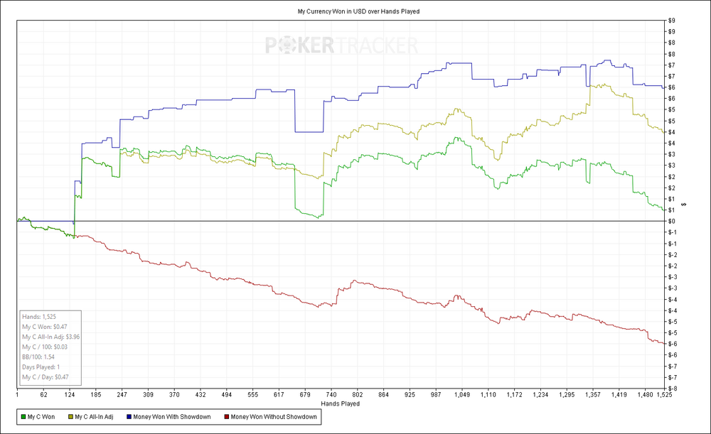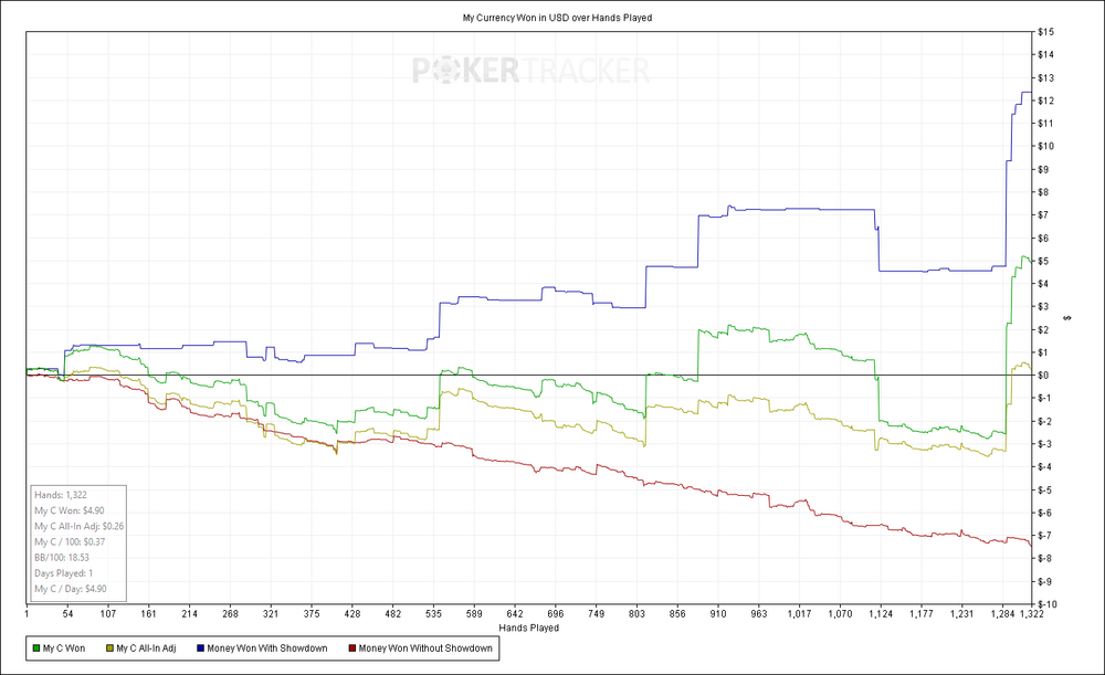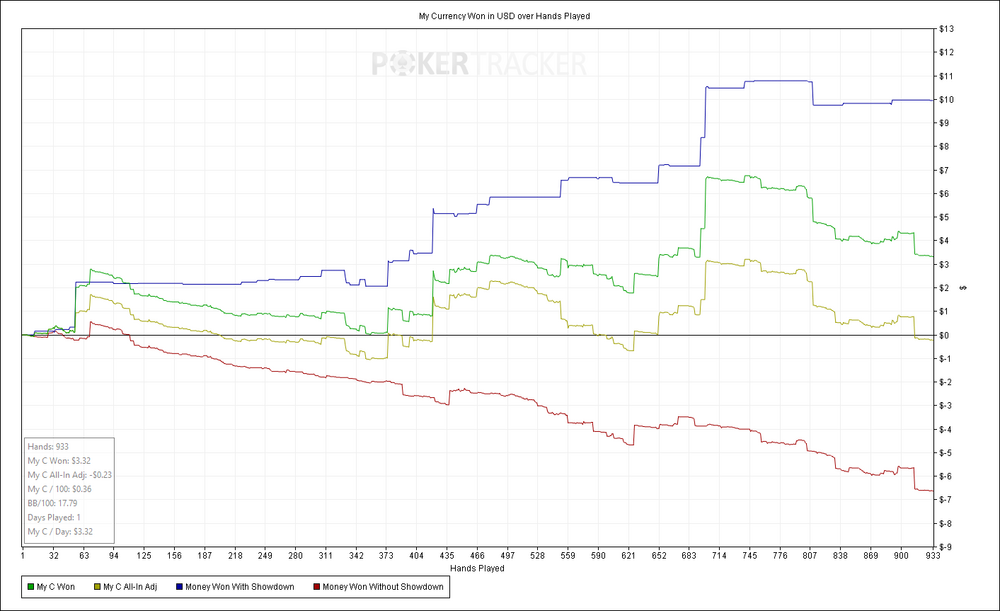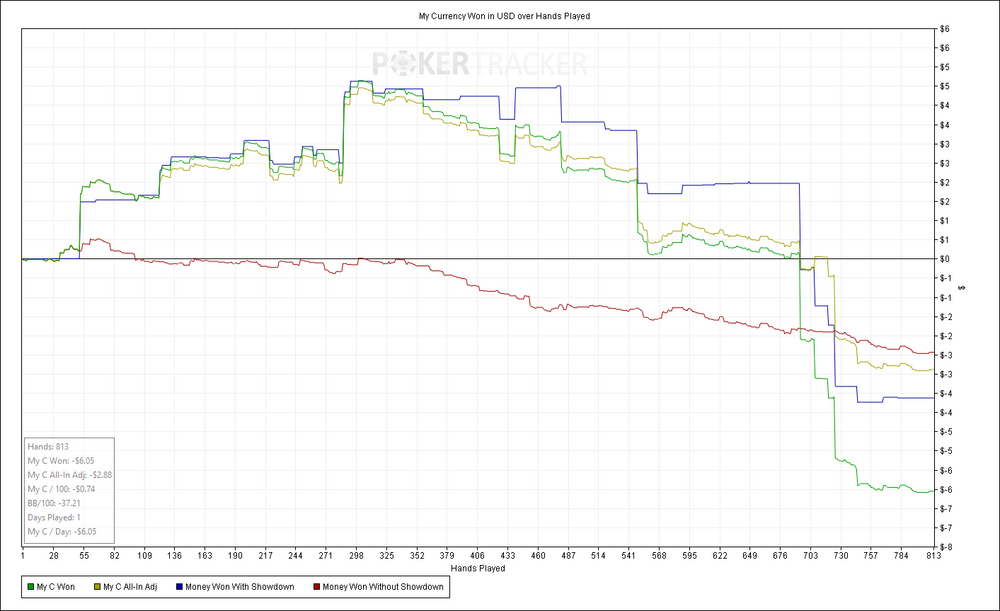 Грав довго, без нормальних пауз, місцями ловив себе на автопілоті. Також часто колив там, де цього робити не треба, заходив у маргінальні споти і намагався дотягнути роздачі, які краще було закривати раніше.