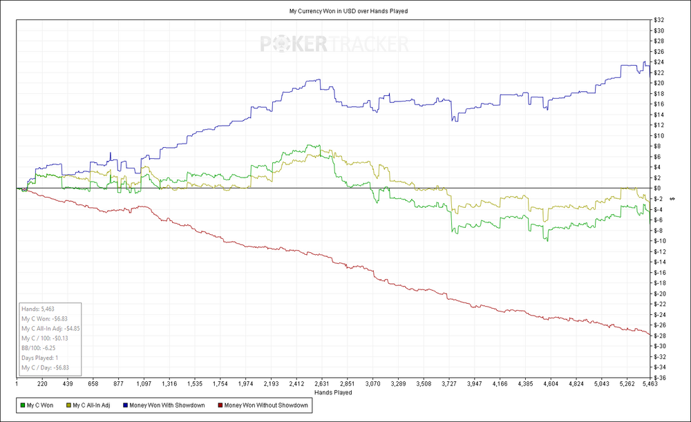 Сьогодні вийшла довга сесія. На старзах зіграв 5.7к рук і, якщо чесно, було чітке бажання відігратись. У якийсь момент почав грати гірше: слоуплеїв, колив там, де не по шансах, тягнув дрова без перспективи добору, ліз у споти, які можна було просто відпустити.