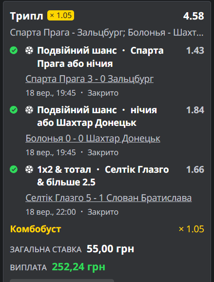 Теж ставка пройшла без проблем, хоча побоювання щодо Щахтара були, але наші козаки вистояли (вимучили) нічию. Крім цього в іншому конкурсі ще й вгадав рахунок 0:0 і отримав 500 грн., які зразу задонатив племіннику, який воює під Покровськом.