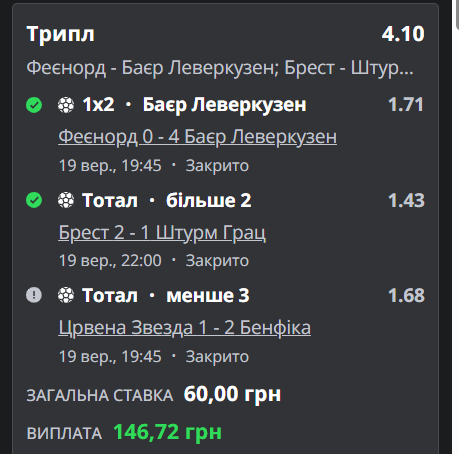 Трішки недооцінив Црвену Звезду, яка в кінці забила гол престижу і підпортила мені ставку.