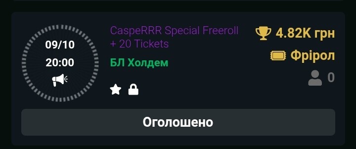 CaspeRRR Special Freeroll + 20 Tickets.