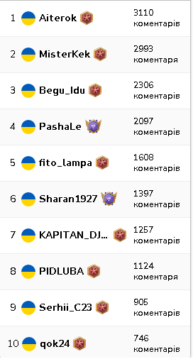 Не пам'ятаю хто саме , робив пост , хто ж саме "виб'є" Лігві з топ 10 по повідомленням на форумі !!!