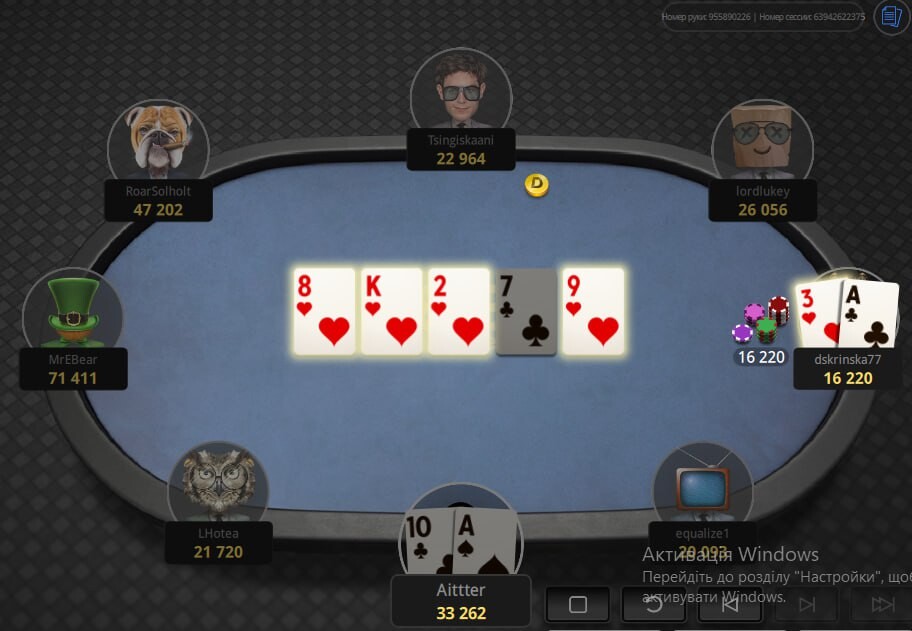 Так я встиг зіграти хіба одну роздачу у тому турнірі)це була перша роздача)