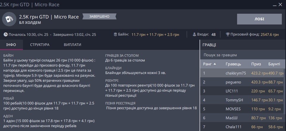 Вітаю,я цей турнір- теж часто граю,бо баїін недорогий і багато любителів,які дарують фішкі на ені ті 😇