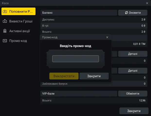 Пароль - з'явиться о 18:00! Буде наданий квиток, котрий потрібно ввести у розділі "Каса", вкладка "Промо-код".