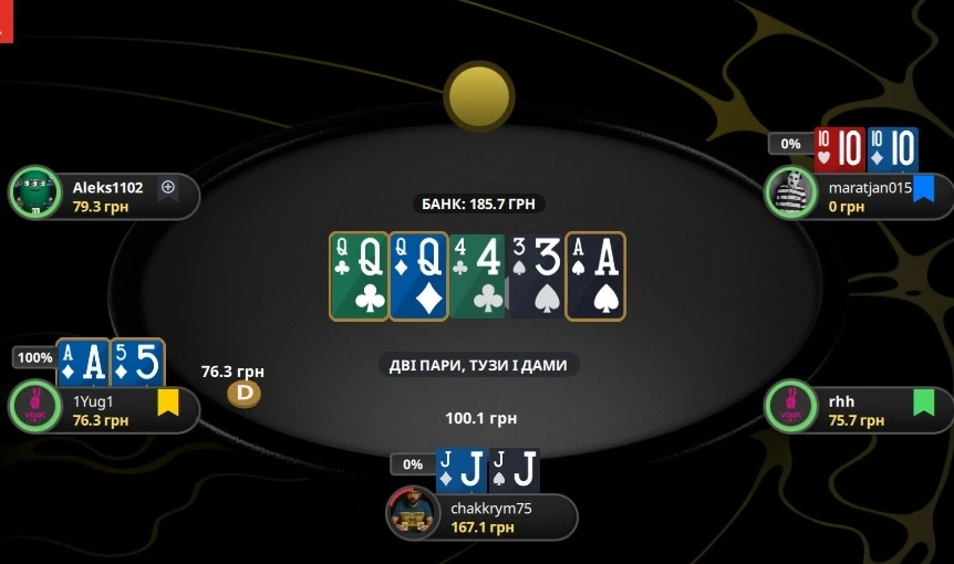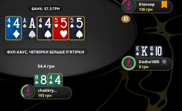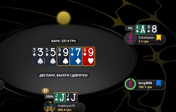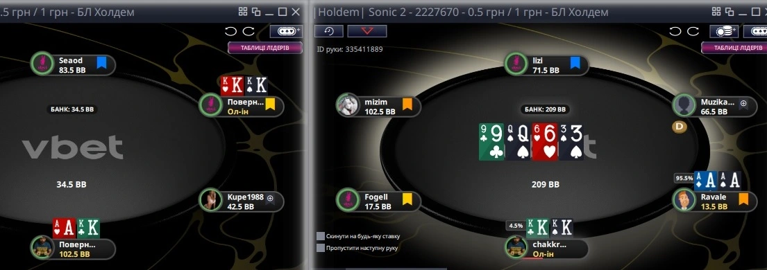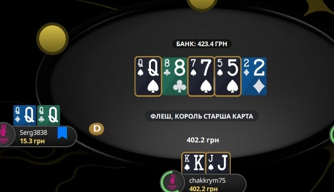 Сьогодняшній день майже нічим не відрізнявся від учорашнього. Все йде так само, спочатку просадка, потім починаю відігруватись. І якщо вчора я просів до 20-00, то сьогодні я просів за декілька роздач з 21-00 по 22-00. Два рази просів кожного разу на БІ упершись в старшу пару. Один раз виставився маючи на руках АВо, а на флопі вийшло А Д 10 ( всі різной масті) , опп прочекав, я рейзонув він заколив. Тьорн 8 (ще одна масть). По картах начебто і дрова є. Опп чекає, я рейз 70% банку, а він запушив у відповідь, я прийняв. В нього АК. На нього стояв маркер слабкого. Мені не закрилось. Ще мінус БІ. І потім по дріб'язку ще мінус БІ.