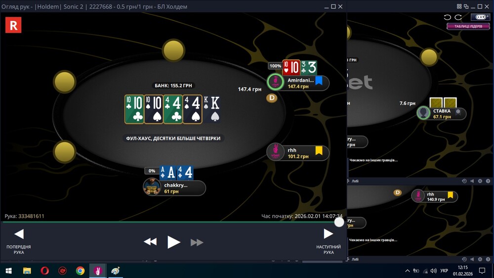 Про гру. Тяжко дається. І не тільки тому, що захворів. Багато гравців, які грубо кажучи бачили , як грають у покер пролітаючи на гелікоптері над казино. Сьогодні я думав, що добавлю ще тисячу, яку треба буде заробити, щоб дістатися мети. У третьму заході мене просто розірвали в хлам, без шансів. Чесно кажучи, аж лячно були заходити в гру знов.