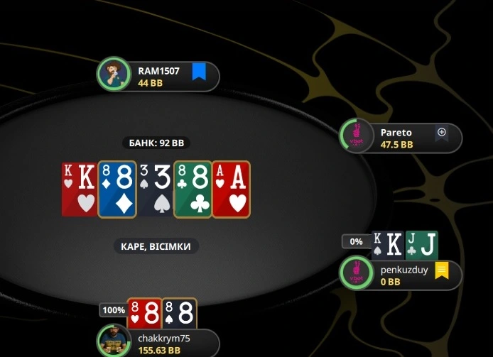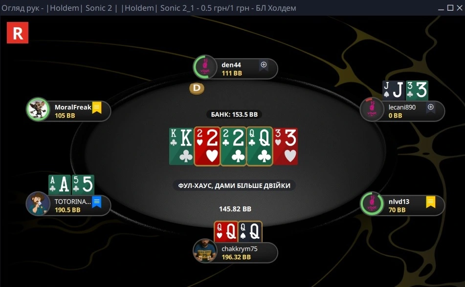 Грав доволі просто. Без всіляких викрутасів, бо в першій же роздачі отримав на третину БІ по носу, то не став більше чудити.