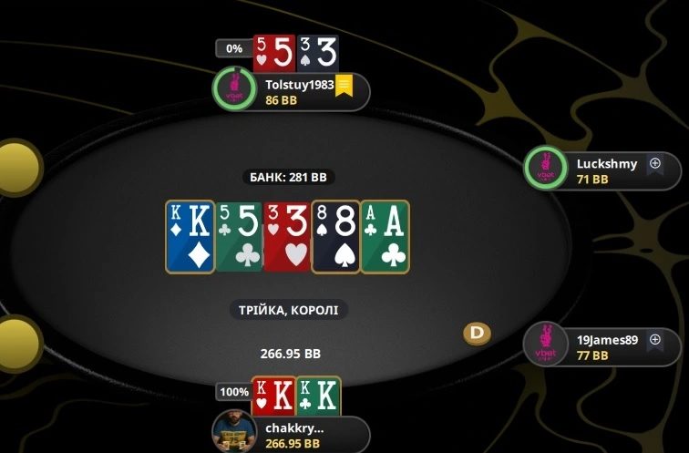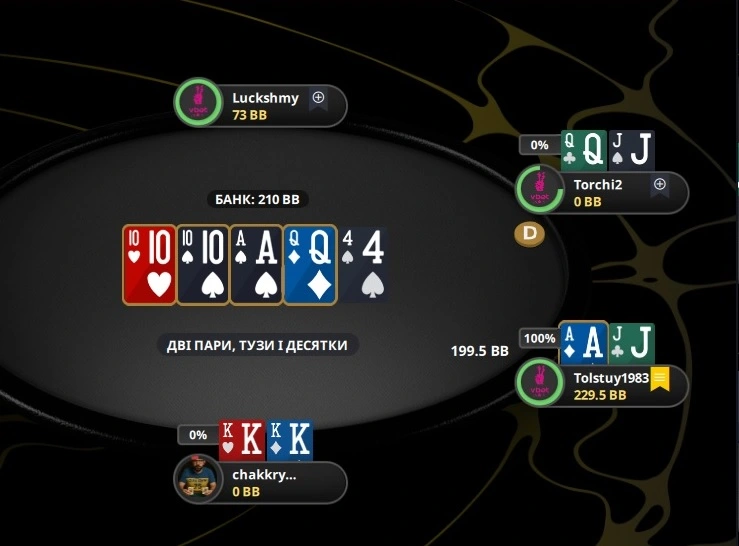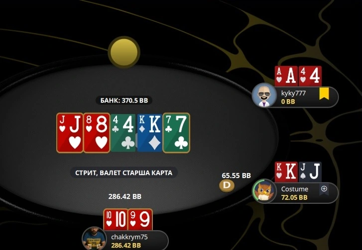 По грі запам'яталася роздача з якої мене видавили оленем: