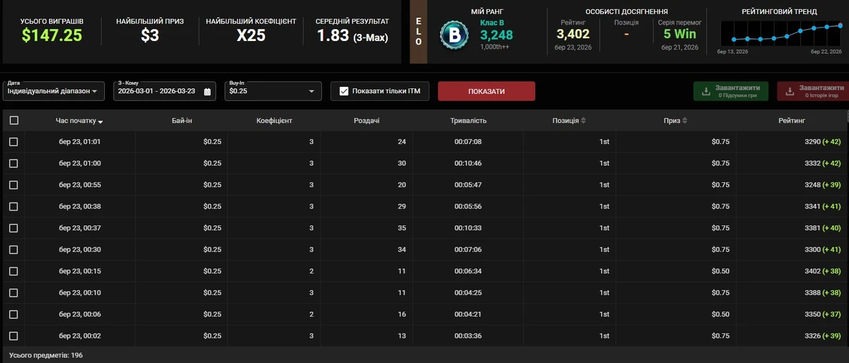 Повернувся години через три і знову пішов полоскати. Стало краще з множниками і відсотком перемог.
