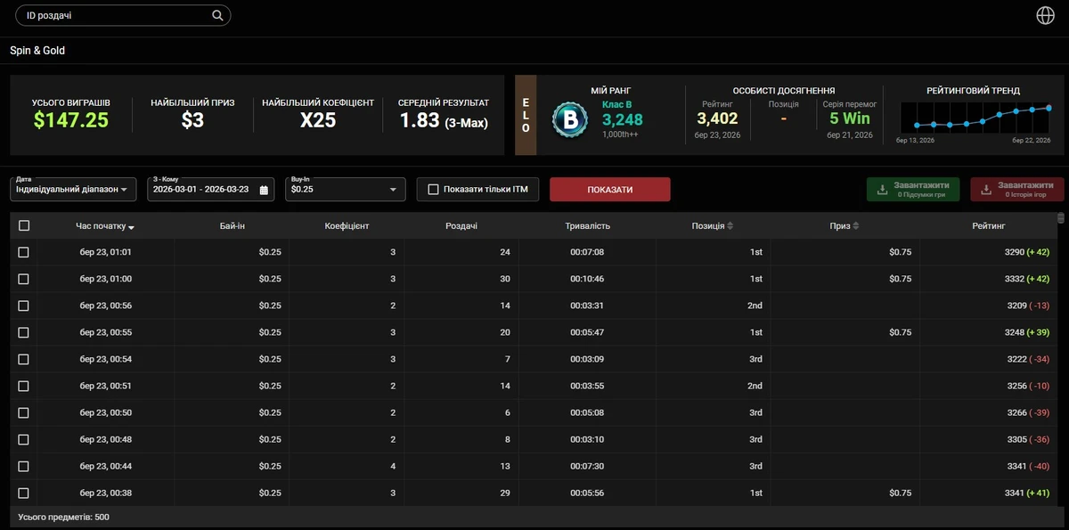 Пішов грати кеш. Недовго грав, підняв 2 БІ. Зробив перерву, багато інших справ було.